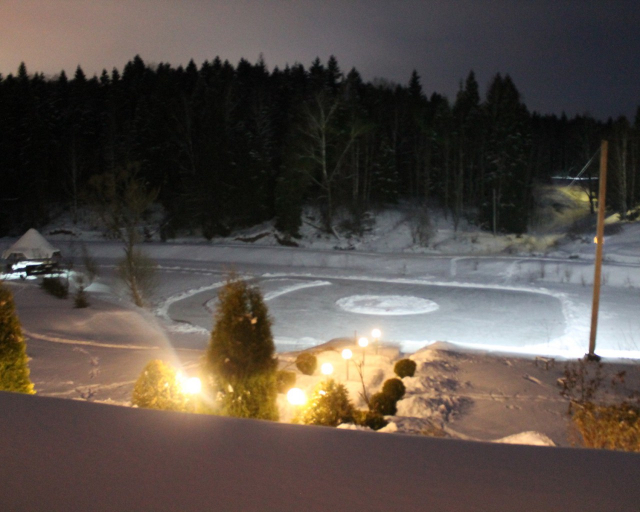 Недалеко от дома: парк птиц, Этномир, горнолыжный склон, лыжня и каток возле дома, река и лес.