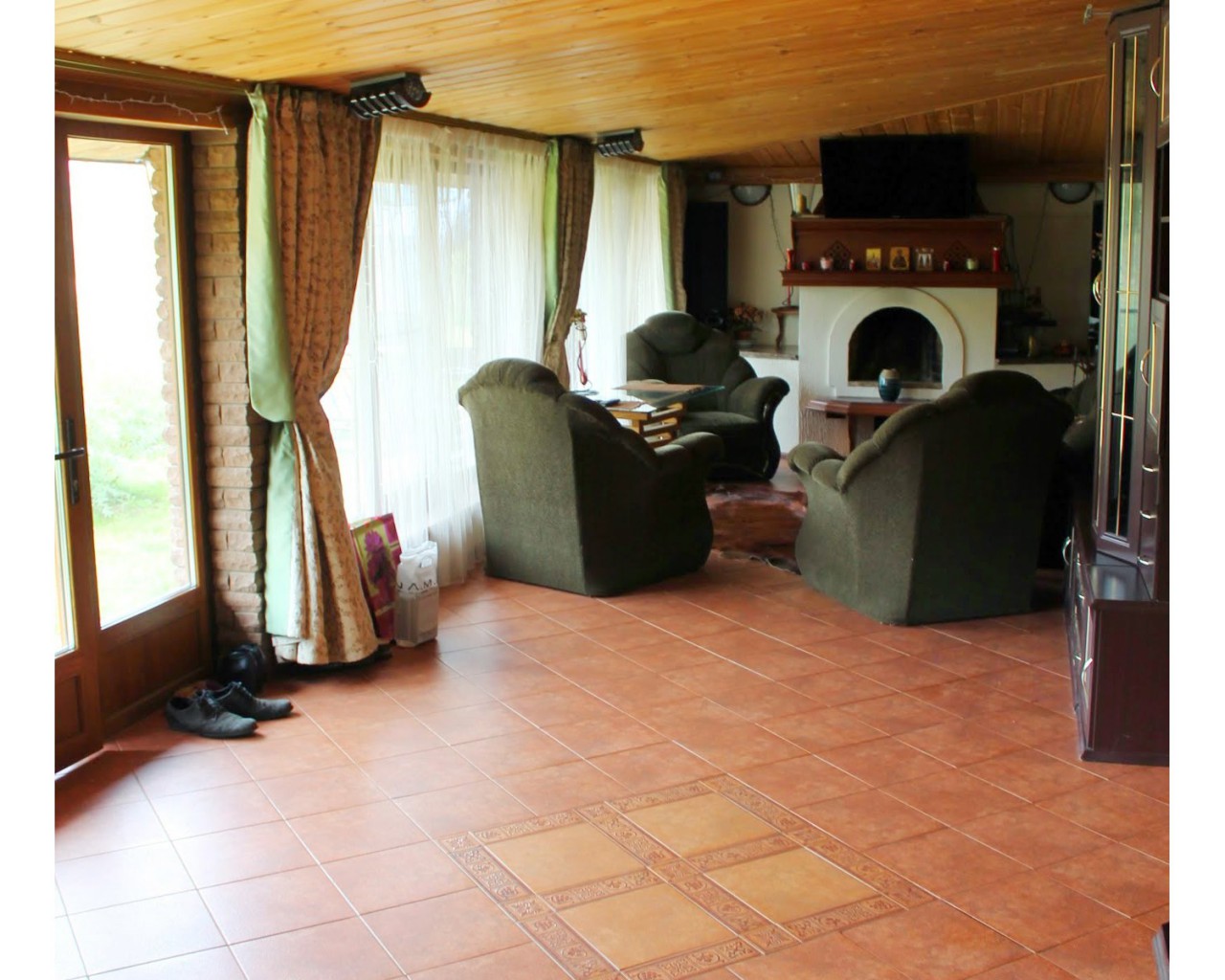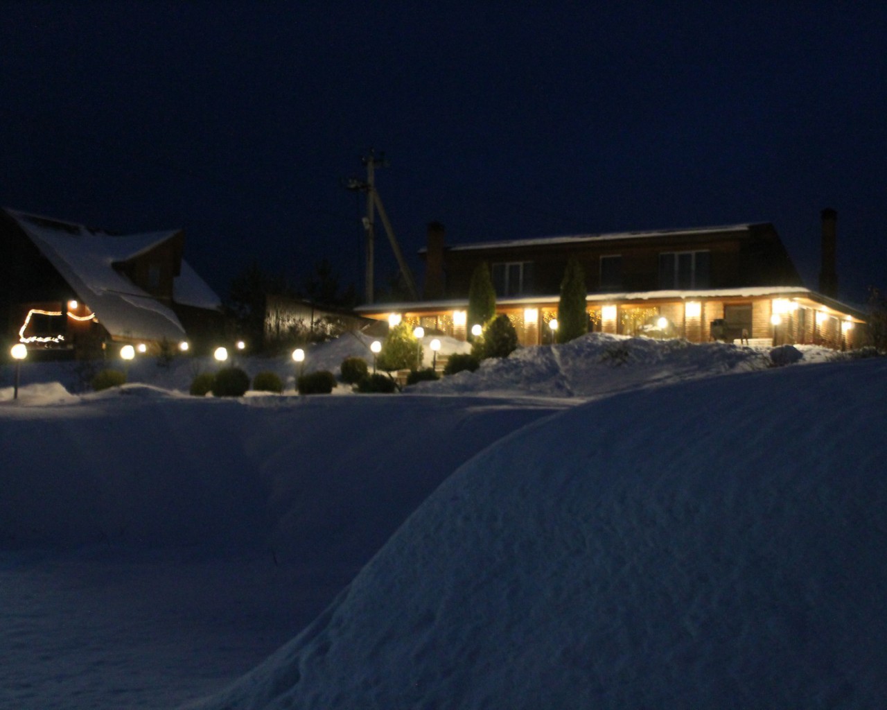 На 1-ом этаже: просторный каминный зал с панорамным остеклением, со светомузыкой, камином и мягкой мебелью (диван на двоих). Большая кухня-столовая, с/у с душем, русская баня, небольшая комната с тренажером (предоставим 1-2 матраса и можно использовать как спальню), кабинет с раскладным диваном на двоих.