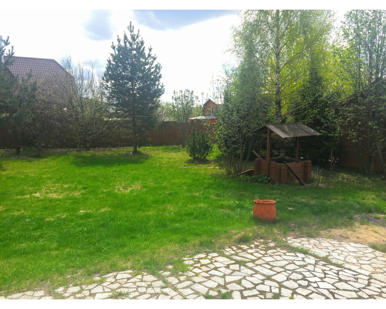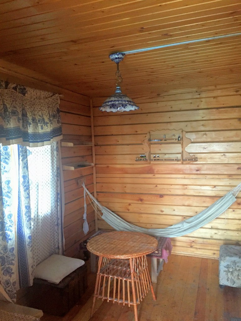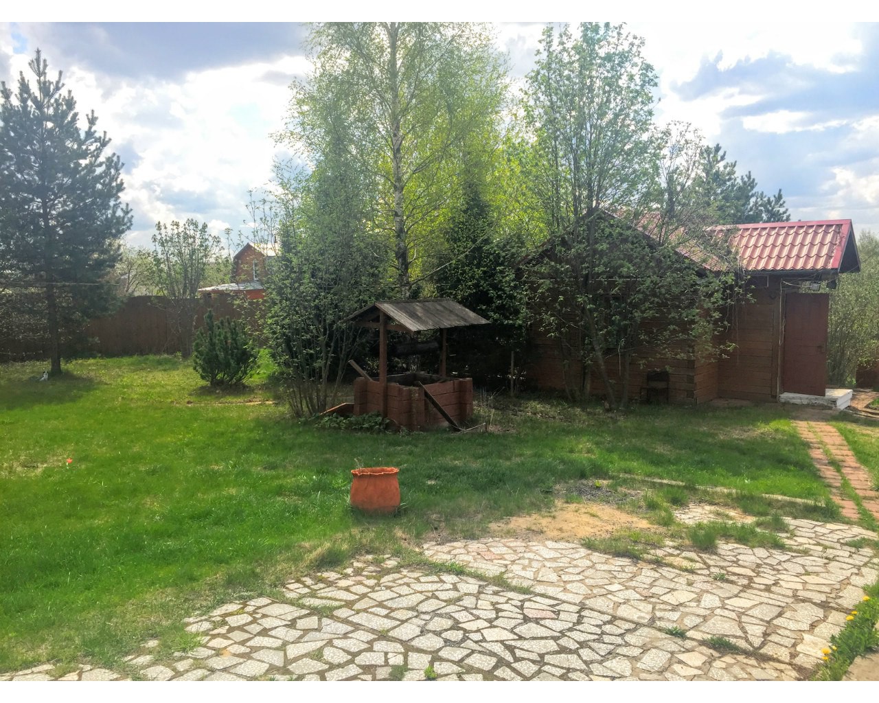 На участке в 15 соток: растут деревья и кустарники, площадка с мангалом и грилем, отдельно стоящая баня на дровах с комнатой отдыха (гамак, небольшой столик и пара кресел) и парной.