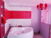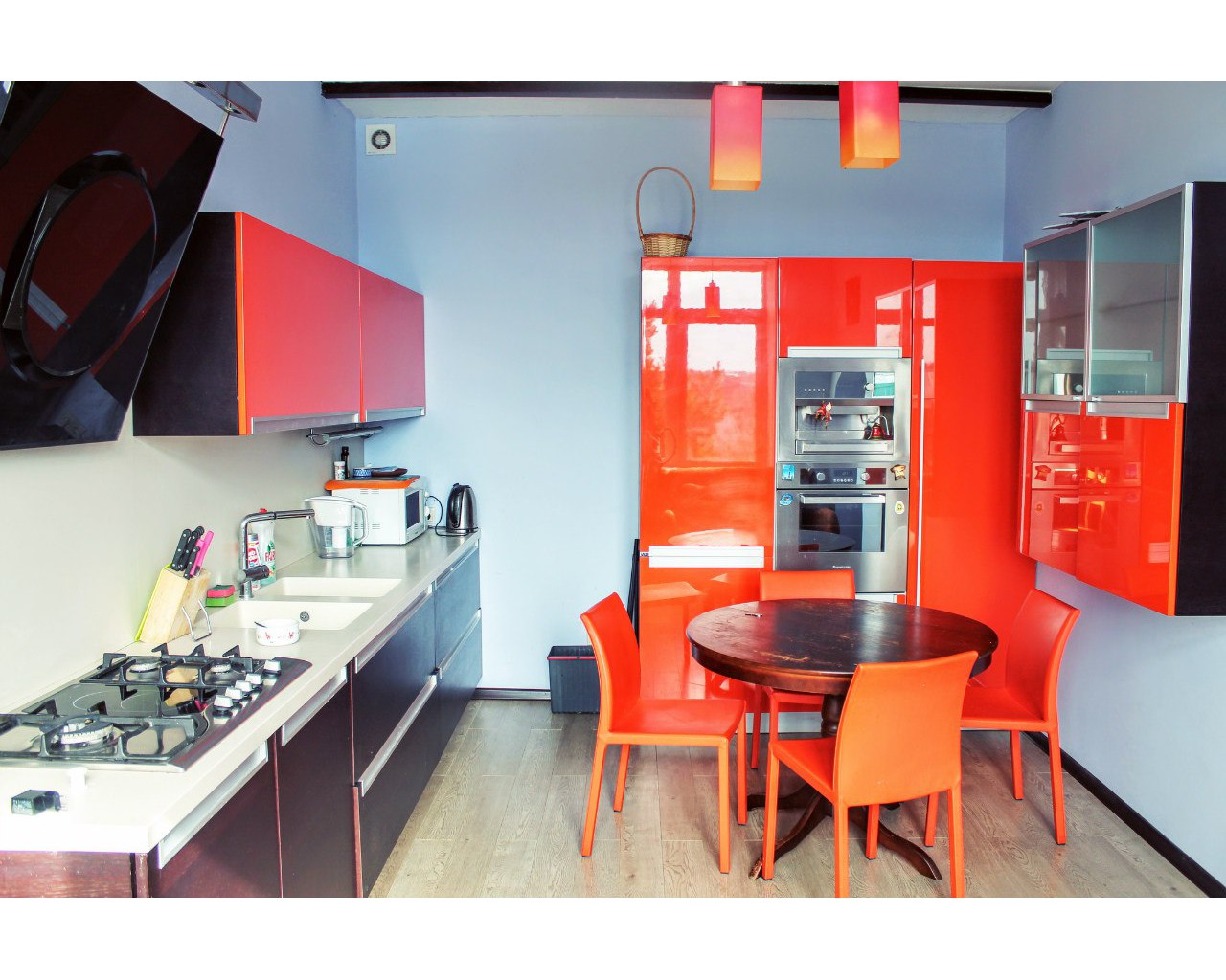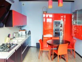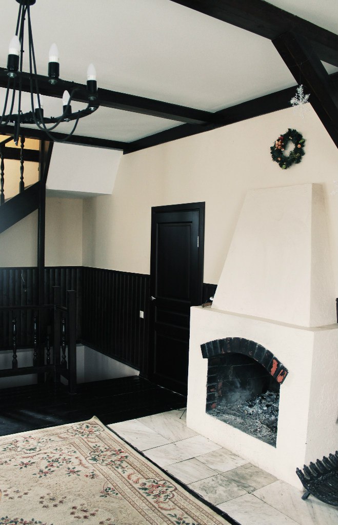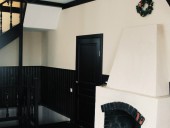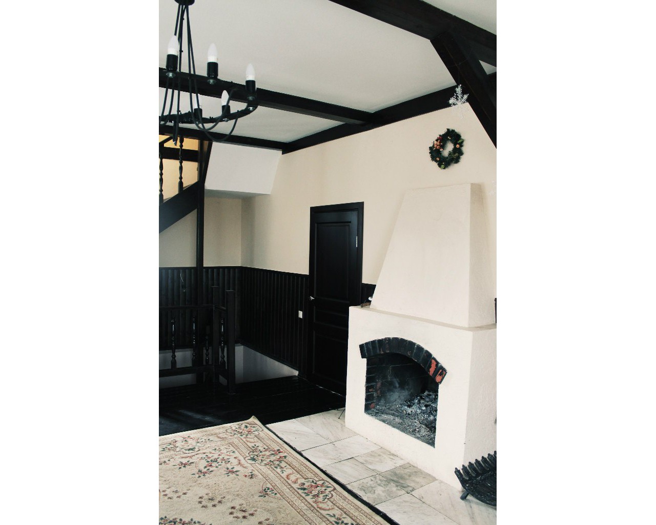 Общая площадь 190 кв.м, 2 этажа. На 1-ом этаже: небольшая веранда, прихожая, гостиная с большим столом, ТВ, камином и мягкой мебелью (диван на одного), кухня-столовая со всей необходимой бытовой техникой и набором посуды (диван на двоих), просторный с/у с душем. На 2-ом этаже: 3 спальни с двуспальными кроватями, большая ванная комната.