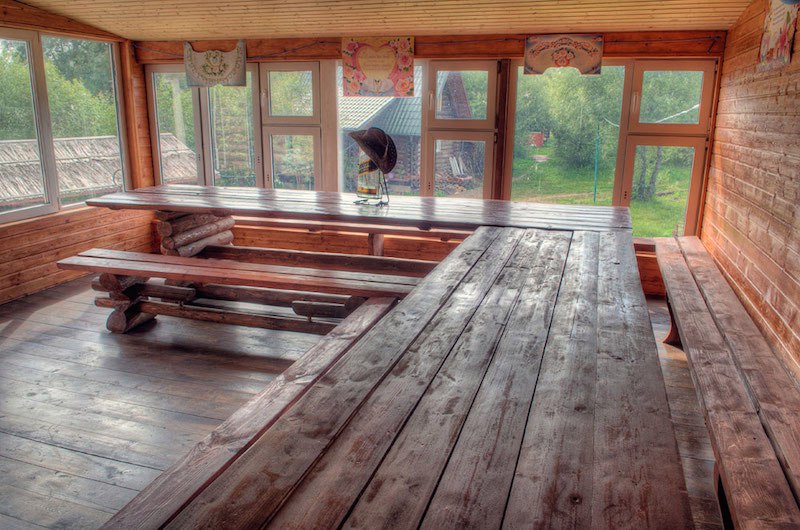 Дома расположены по всей территории, т.е. вы не пересекаетесь с другими гостями. У каждого дома мангал, есть беседки. Домики на 6-8 гостей, на 8-10 гостей, на 16 гостей. И большой коттедж на 35-50 человек. В некоторых домах баня находится в доме, в некоторых нет, но вы всегда можете воспользоваться баней, которая расположена на территории и оплачивается отдельно.