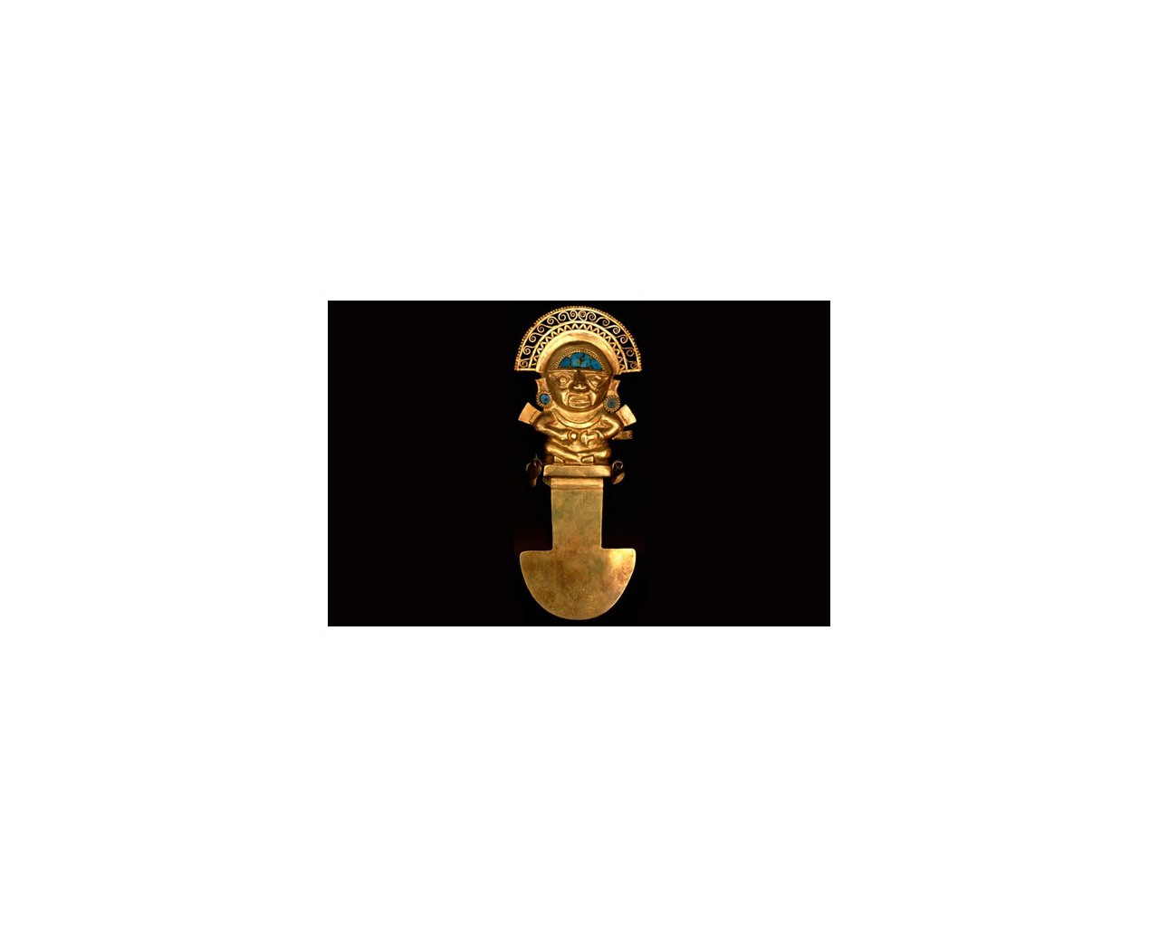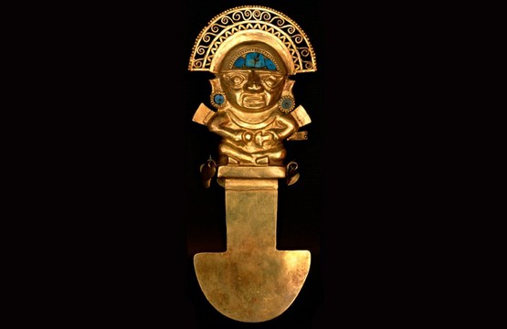 Туми (Tumi) - церемониальный нож используемый Инками для жертвоприношений. Ритуальный нож для трепанации черепа чаще всего изготовлялся из золота или сочетания золота и серебра. Нижняя закруглённая часть была заточена. С помощью этого ритуального ножа во время религиозных церемоний отсекалась голова жертвы. украшенный бирюзой. Бог Найм Лапа изображен с полукруглым головным убором и парой крыльев.