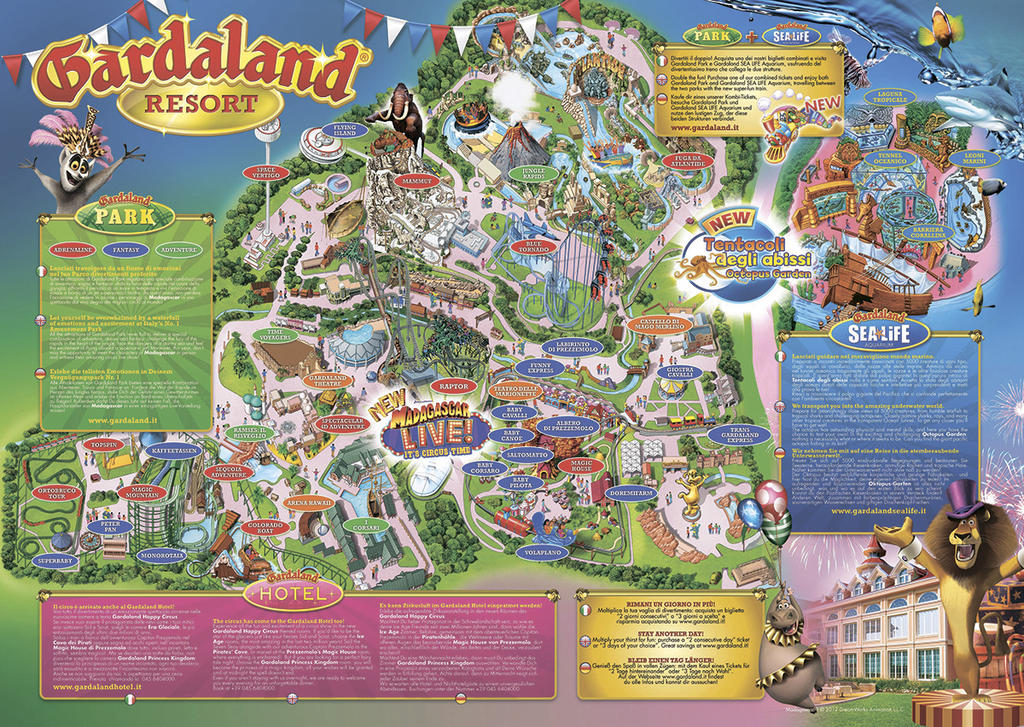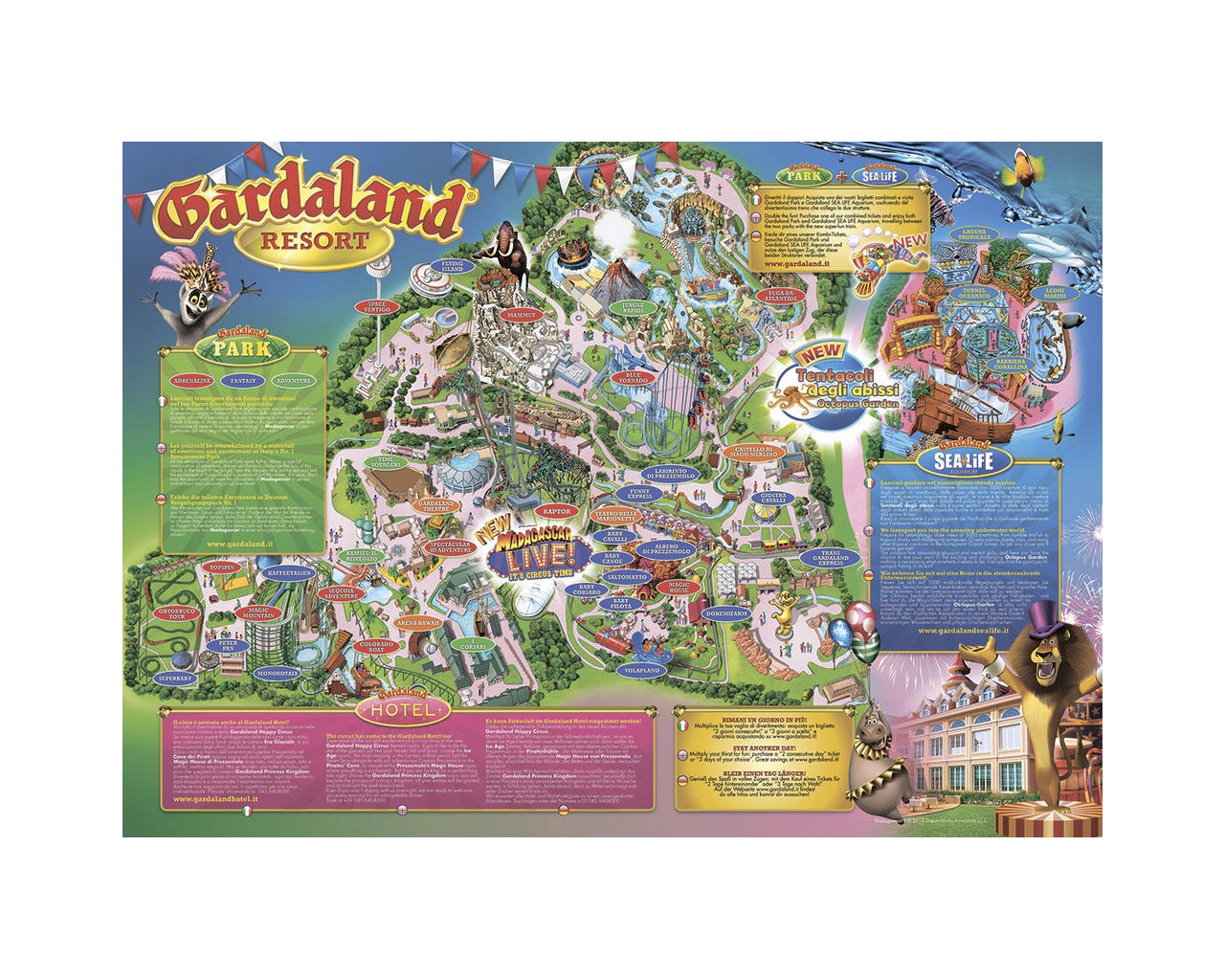 Расположенный на южном побережье озера Гарда, тематический парк развлечений Гардаленд является своего рода итальянским Диснейлендом. На огромной территории в более чем 500 тысяч квадратных метров находится более 40 ультрасовременных аттракционов для взрослых и детей. Кроме того, инфраструктура парка представлена собственными кафе и ресторанами, а также более чем двумя десятками разнообразных магазинов.