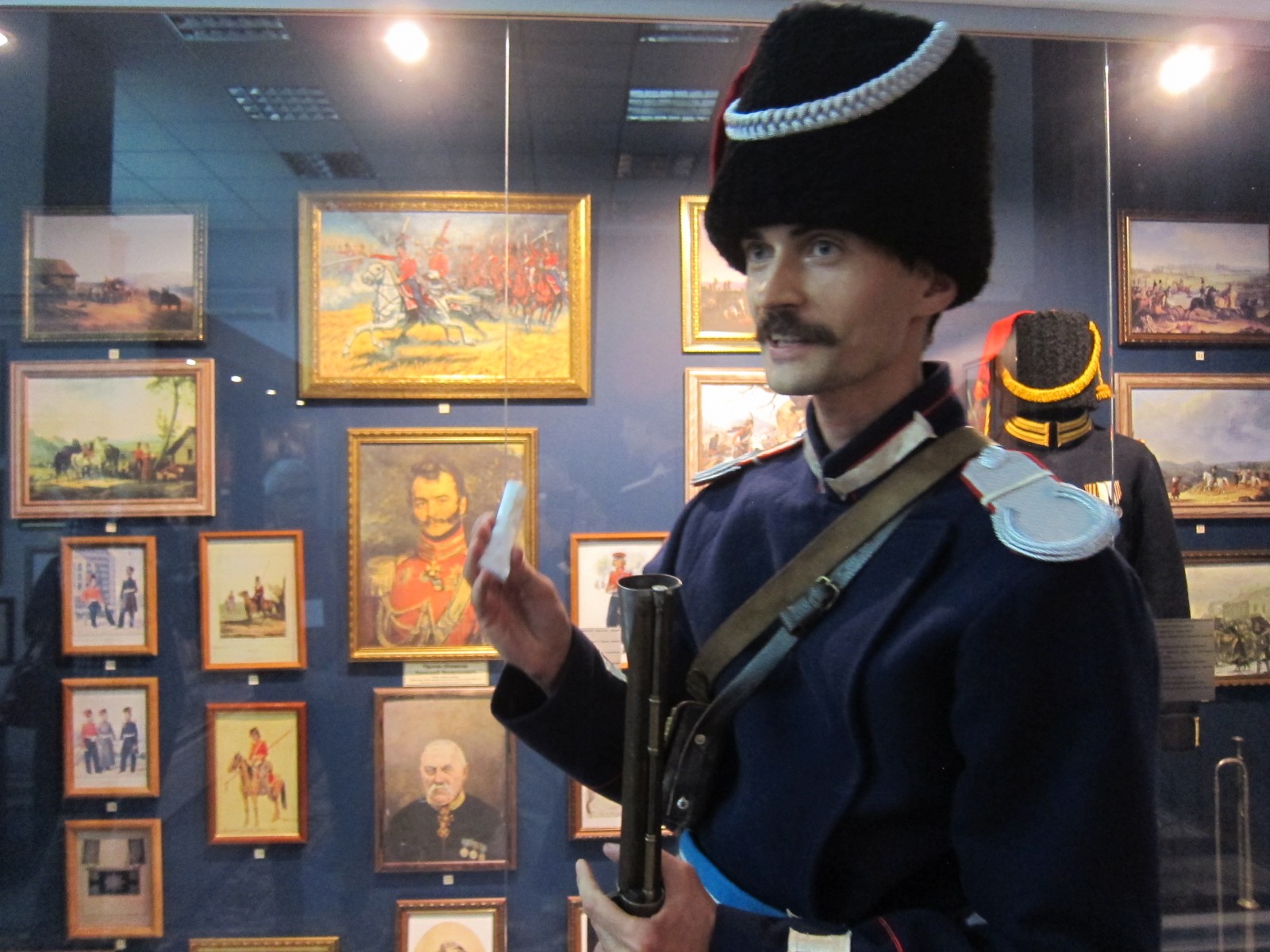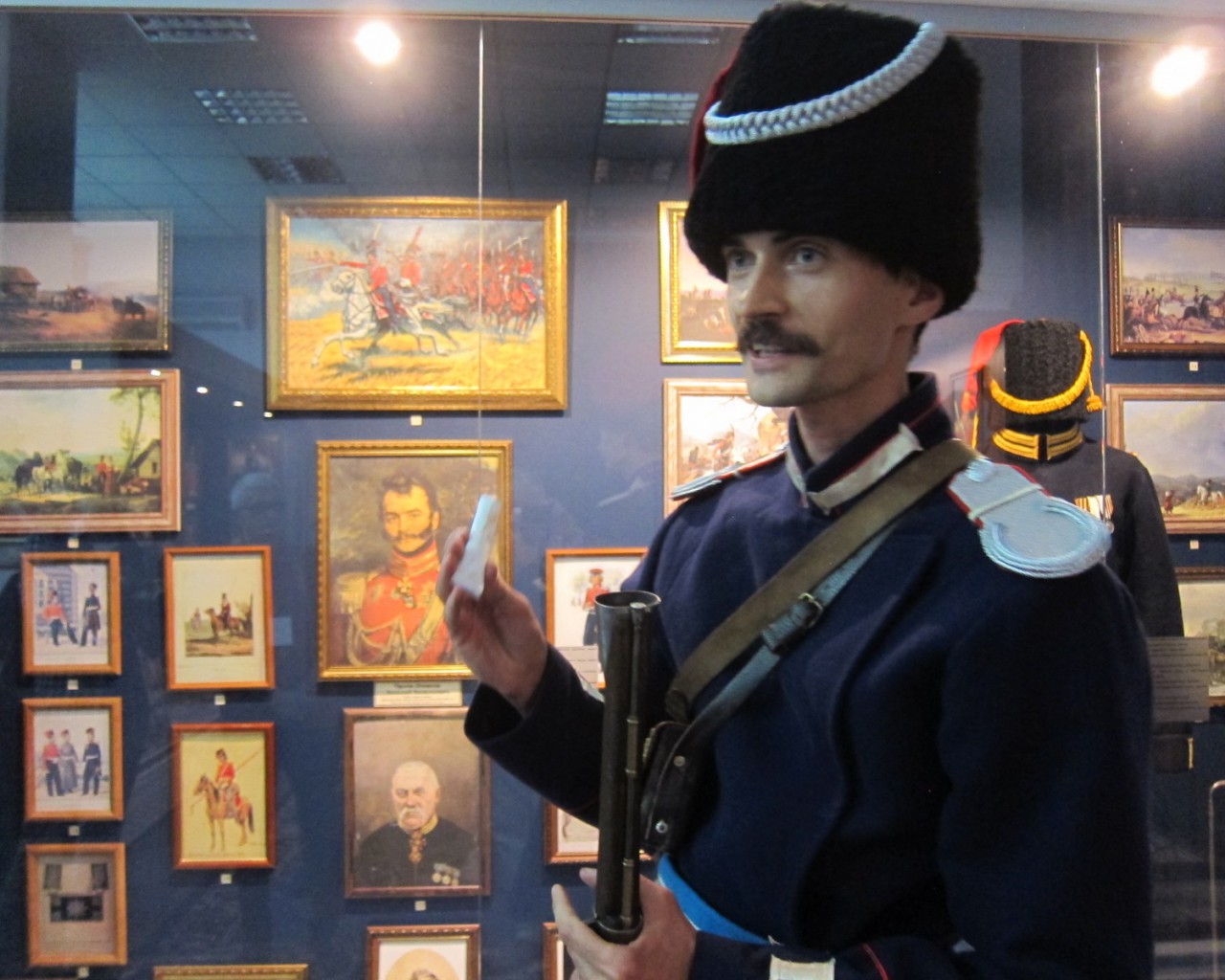 Гостей КВЦ ждет увлекательный рассказ о малоизученной странице истории донского казачества. Судьба трех славных донских казачьих частей, входивших в Российскую императорскую гвардию, предстанет перед вами через уникальные подлинные документы, фотографии, форму гвардейцев, их оружие и снаряжение, которые никогда ранее не были представлены широкой публике. Богатейшая экспозиция КВЦ познакомит вас не только с уникальными историческими фактами, касающимися истории Европы, России, Донского края, но и с судьбами конкретных людей, оставивших славный след в истории Государства Российского. У нас вы узнаете подробности «атаки казаков в голом виде», повергнувшей в шок французов, перешедших границы Российской Империи в 1812 году; о подвиге 300 казаков-гвардейцев в битве народов при Лейпциге 1813 года, который по своим историческим последствиям превзошел подвиг 300 спартанцев; о единственном в истории всех мировых войн случае захвата кавалерией морского корабля; о том, что родоначальниками названия сети кафе «Бистро» были именно донские казаки и о многом другом.