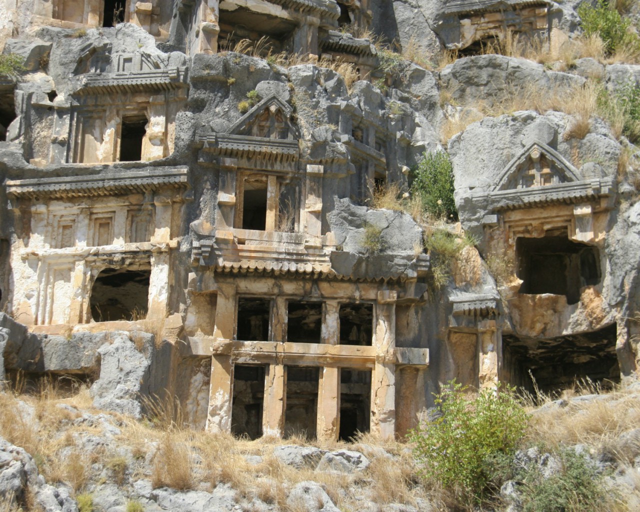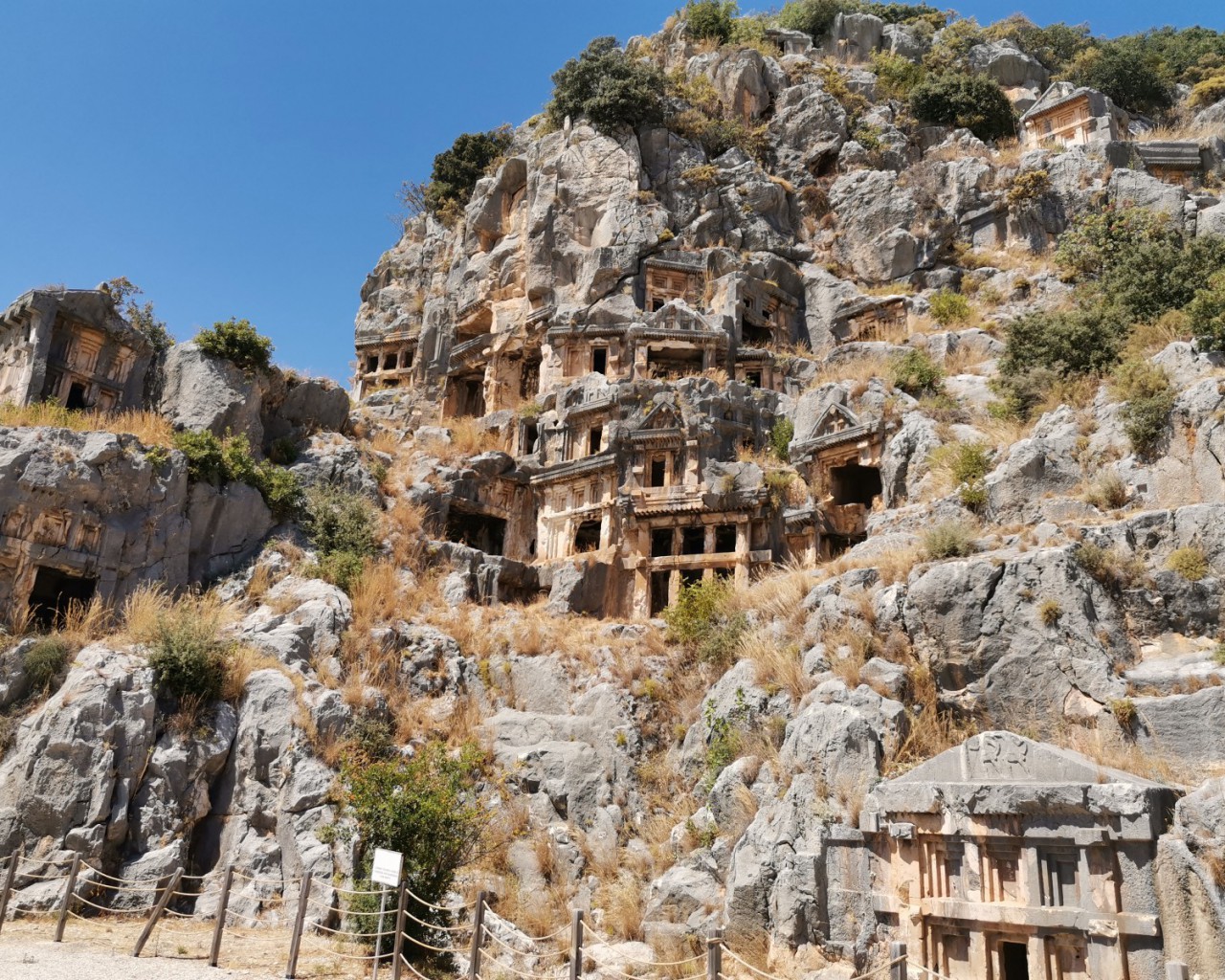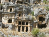 Ликийские гробницы Миры – уникальный античный некрополь, построенный в древней Мире, руины которой расположены на окраине турецкого города Демре. Ликийские гробницы являются одной из самых древних форм погребальных сооружений в мире. Захоронения на склоне горы начали создавать в IV веке до нашей эры. Строительство некрополя в скальном грунте требовало большого количества времени и сил, поэтому здесь хоронили только самых богатых и известных граждан города. Почти каждая гробница состоит из двух помещений, и внутри нее расположен саркофаг. Примечательно, что все захоронения соединяют каменные лестницы.