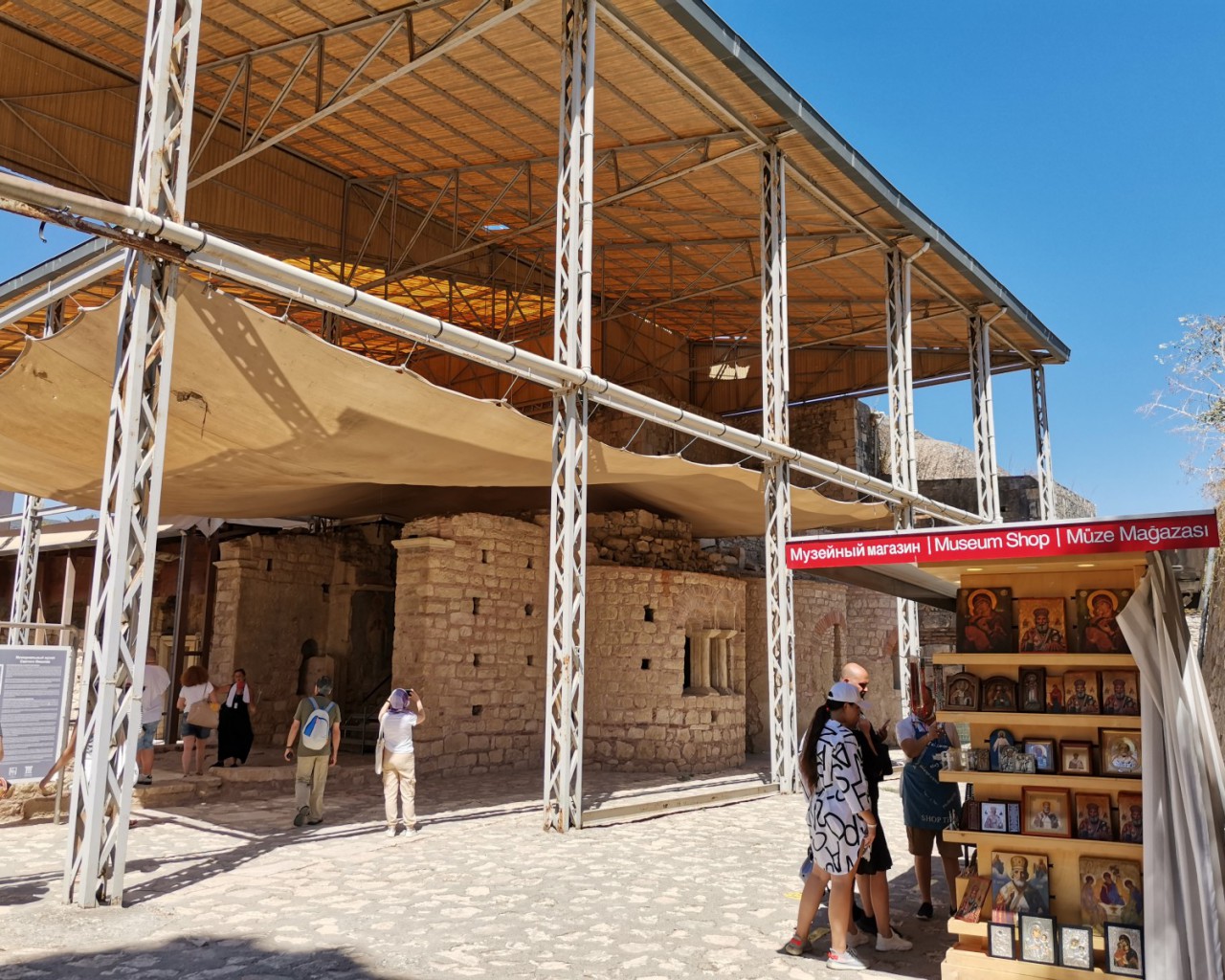 В 1850 году развалины храма посетил русский путешественник А. Н. Муравьёв и возбудил почин по сбору средств на его восстановление (предполагалось создание впоследствии нового центра паломничества). В результате, были куплены руины церкви и прилегающий участок земли. В начале 1858 года начались восстановительные работы, которые вызвали беспокойство во Вселенской Патриархии (территория находится в пределах её юрисдикции), а также у турецких властей. В конце 1874 года российским Святейшим Синодом был дозволен сбор средств для сооружения здесь монастыря (русский посол в Константинополе граф Игнатьев де-факто передал храм в ведение русского Пантелеимонова монастыря на Афоне); образовавшийся «мирликийский капитал» в размере 223 000 рублей в сентябре 1888 года был передан из хозяйственного управления Синода в Императорское Православное Палестинское общество. Ввиду бесперспективности дальнейших усилий, 7 декабря 1910 года означенный капитал был передан Барградскому комитету — на строительство храма Св. Николая в Бари (Италия).
