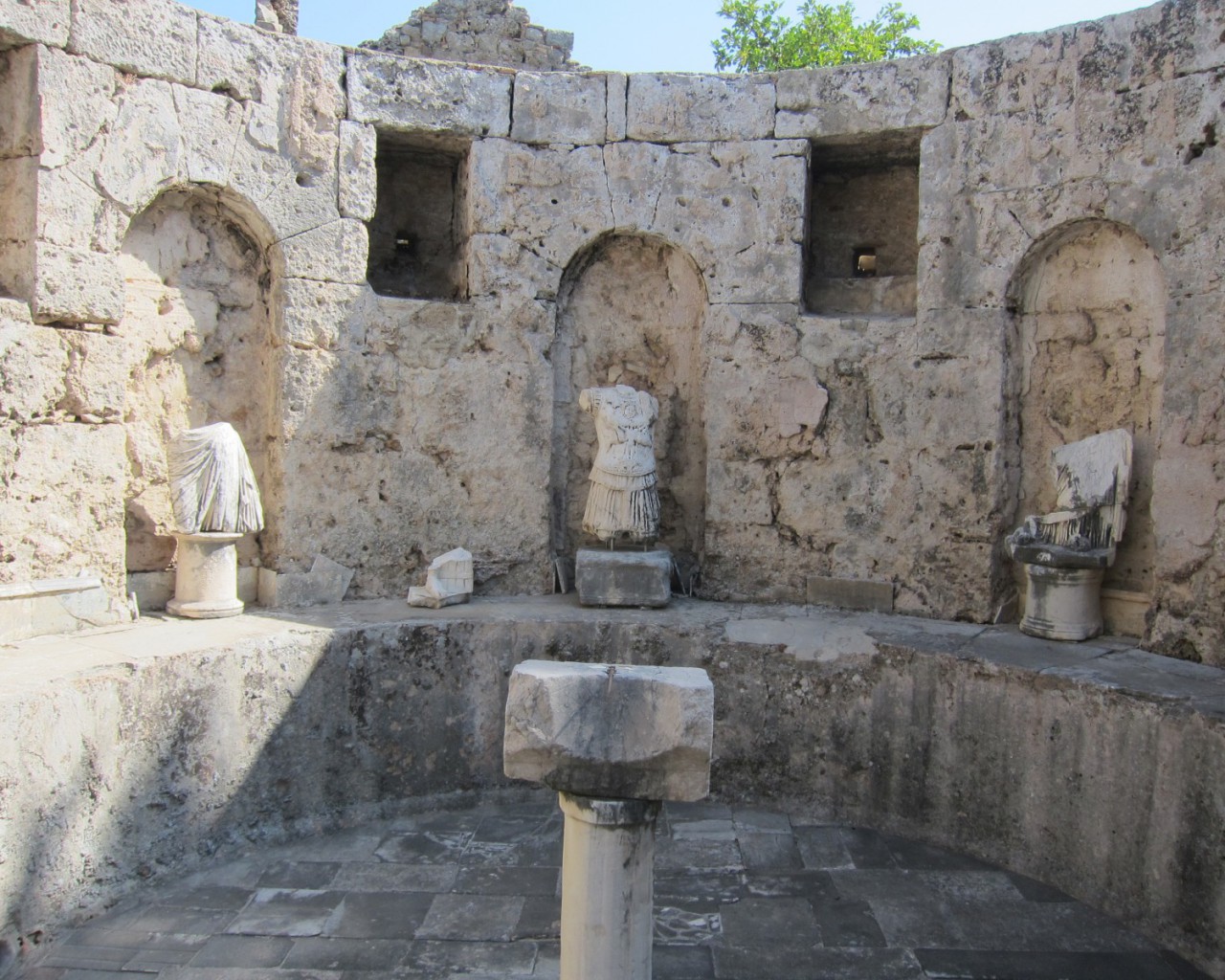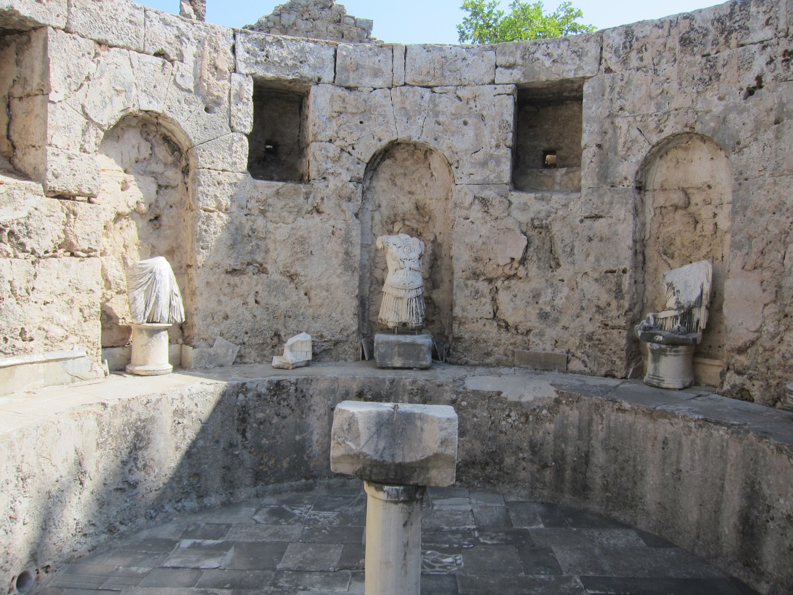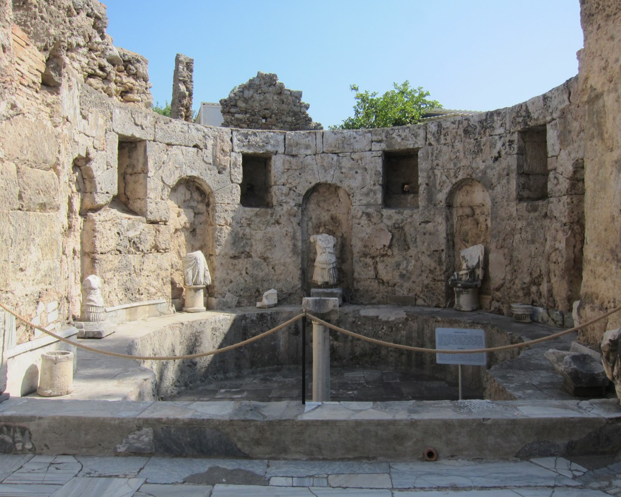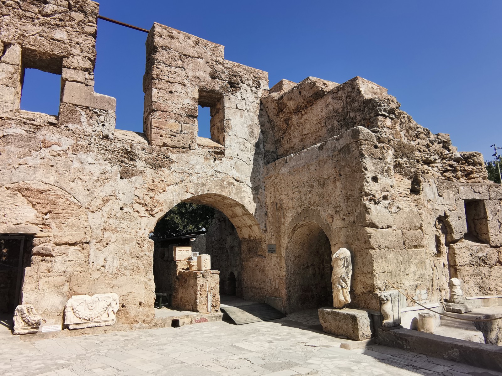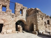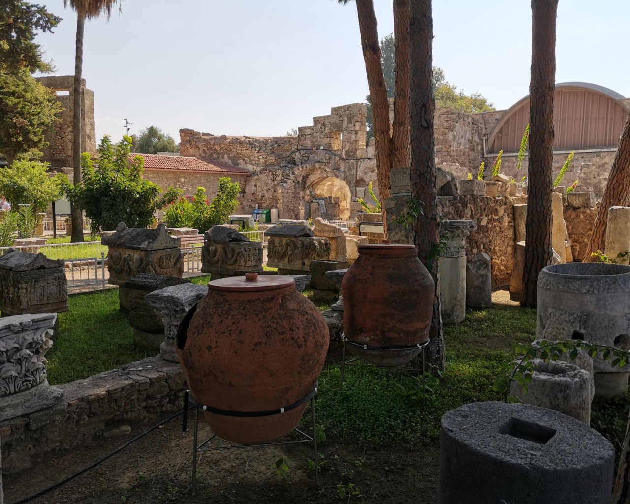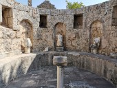 Музей в Сиде построен на месте бывших древнеримских бань (II век н.э.). Почти две тысячи лет назад «сливки» общества уже парились в настоящей сауне! А после освежались в бассейнах с горячей и ледяной водой, которая подавалась в бани по одному из первых в мире акведуков (прототип современного водопровода).