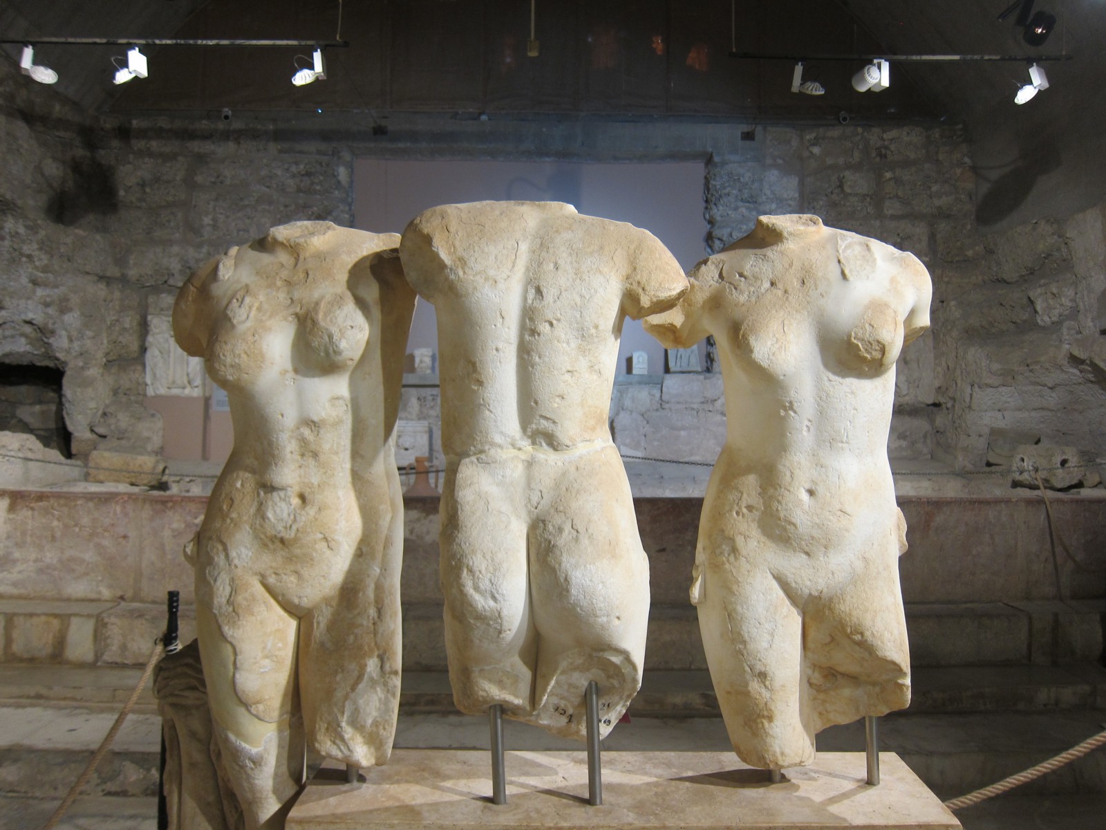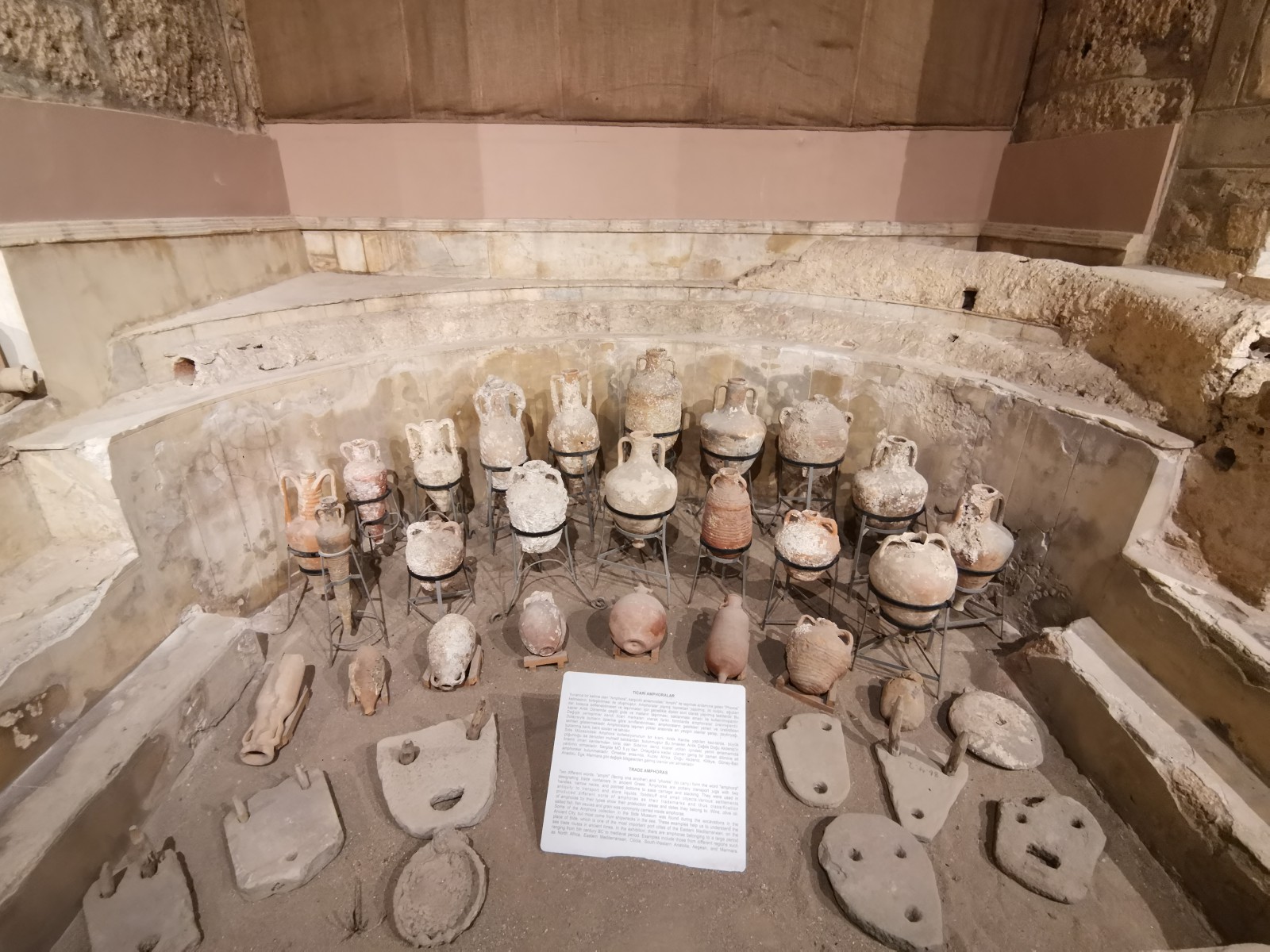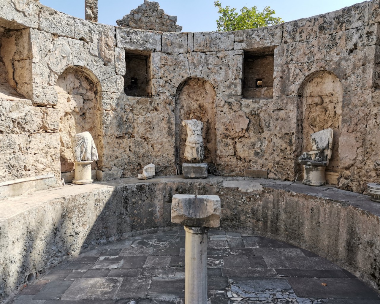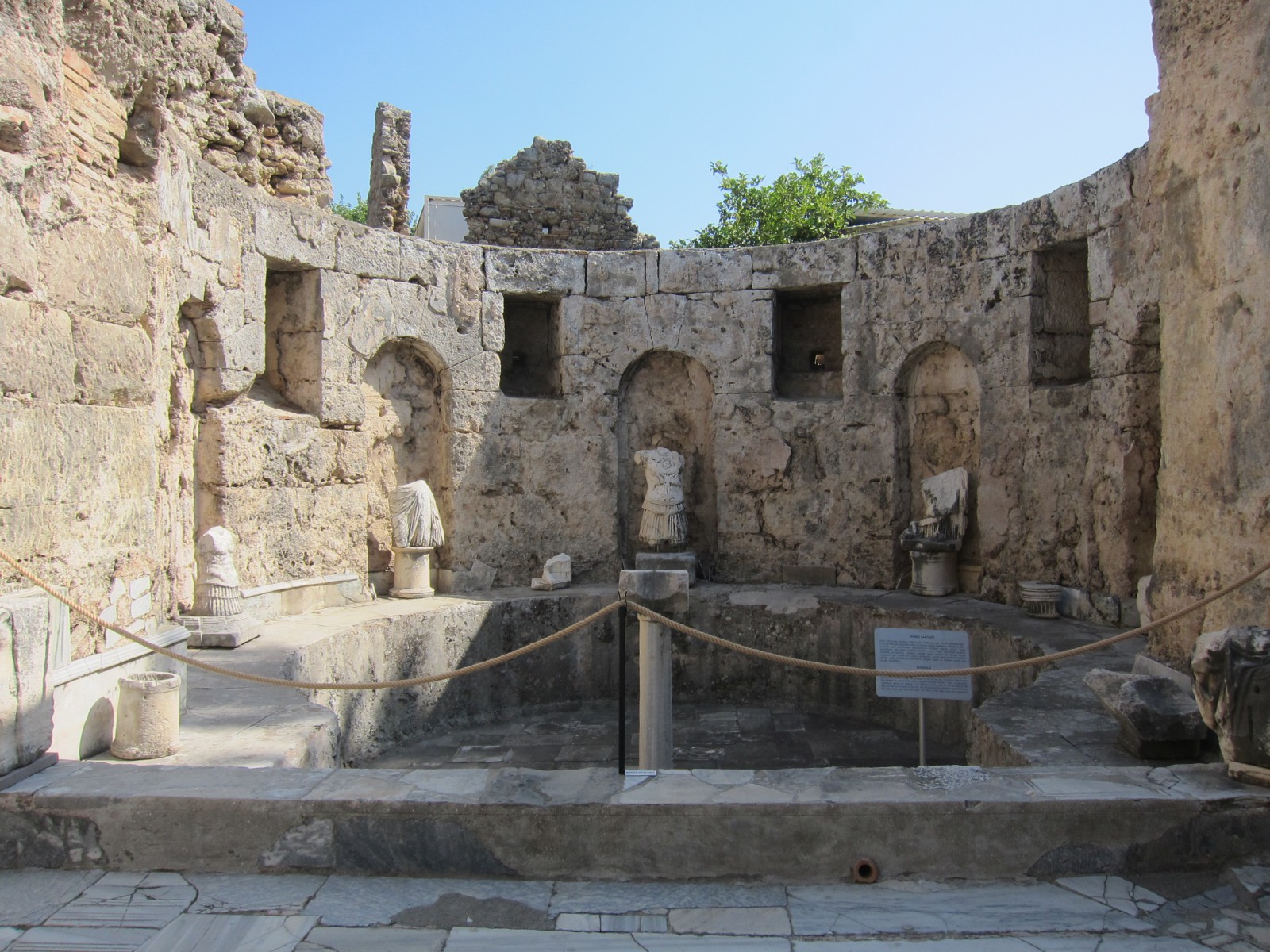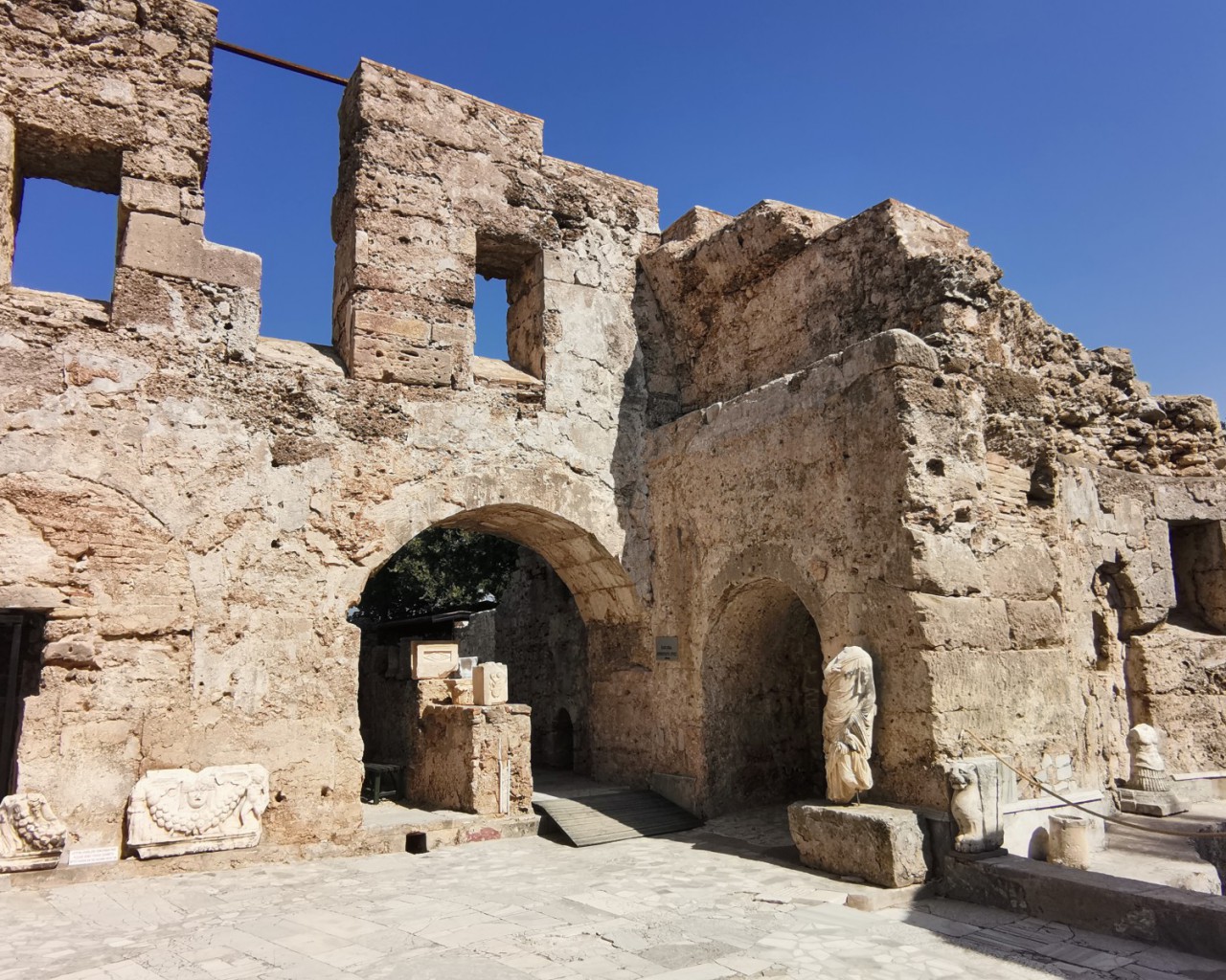 Музей в Сиде построен на месте бывших древнеримских бань (II век н.э.). Почти две тысячи лет назад «сливки» общества уже парились в настоящей сауне! А после освежались в бассейнах с горячей и ледяной водой, которая подавалась в бани по одному из первых в мире акведуков (прототип современного водопровода).