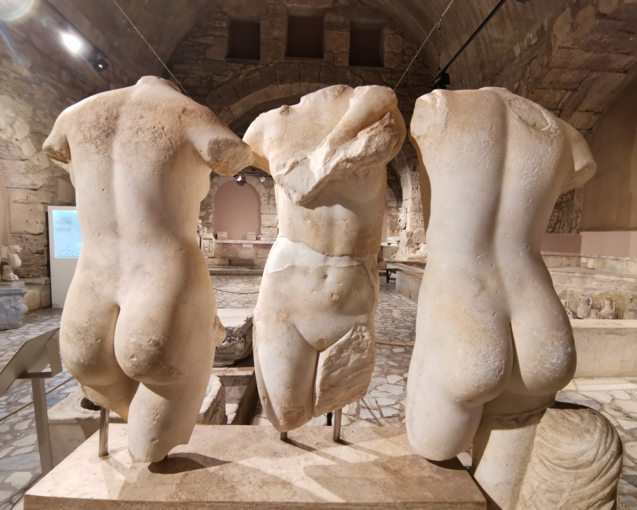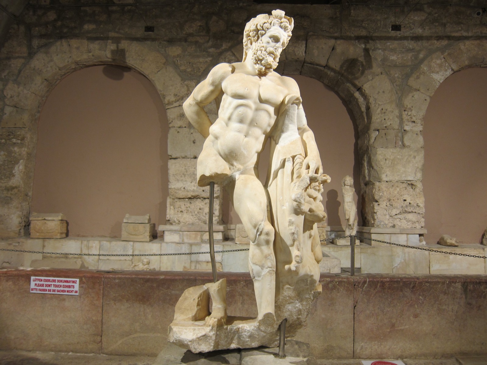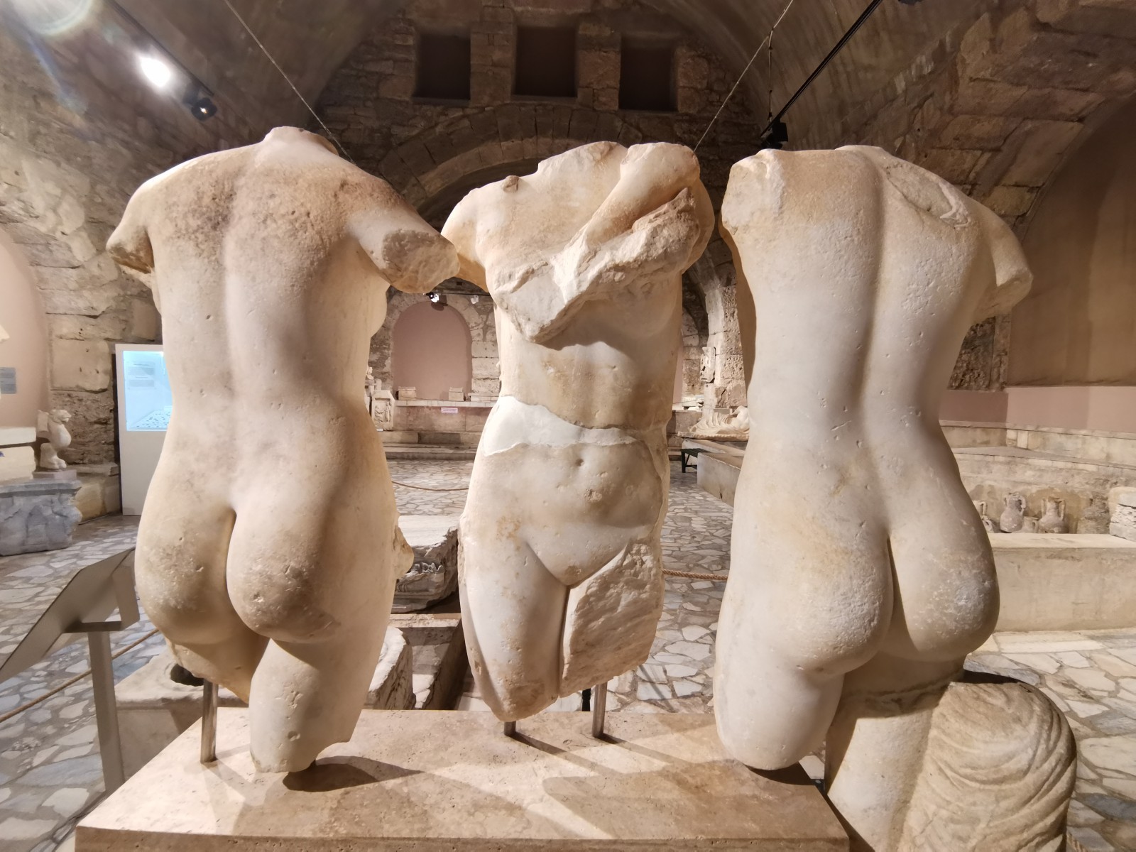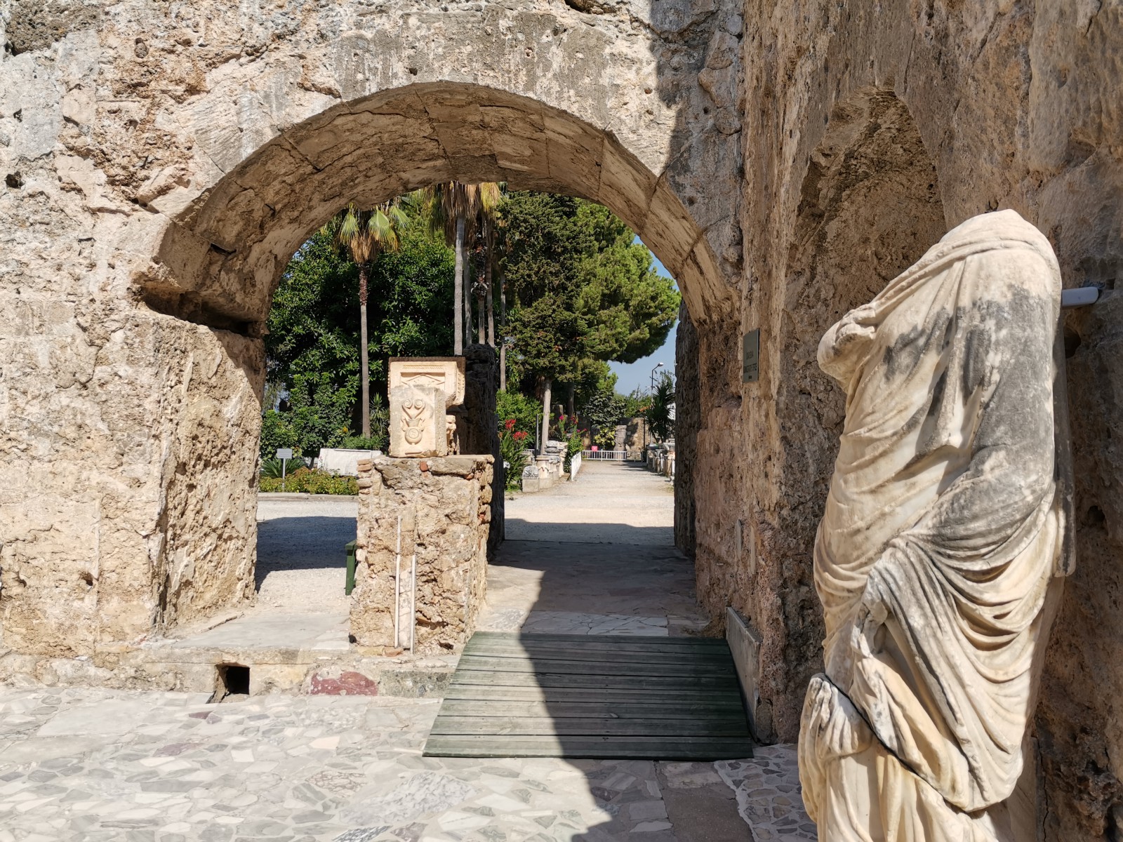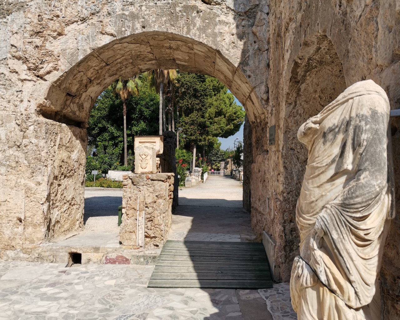 Музей в Сиде построен на месте бывших древнеримских бань (II век н.э.). Почти две тысячи лет назад «сливки» общества уже парились в настоящей сауне! А после освежались в бассейнах с горячей и ледяной водой, которая подавалась в бани по одному из первых в мире акведуков (прототип современного водопровода).