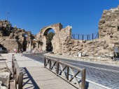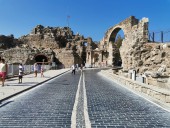 Монументальные ворота и памятник Веспасиана трудно пропустить, поскольку они расположены на главной дороге Лиман Каддези (Liman Caddesi), которая ведет в центр древней Сиде, очень близко к театру.