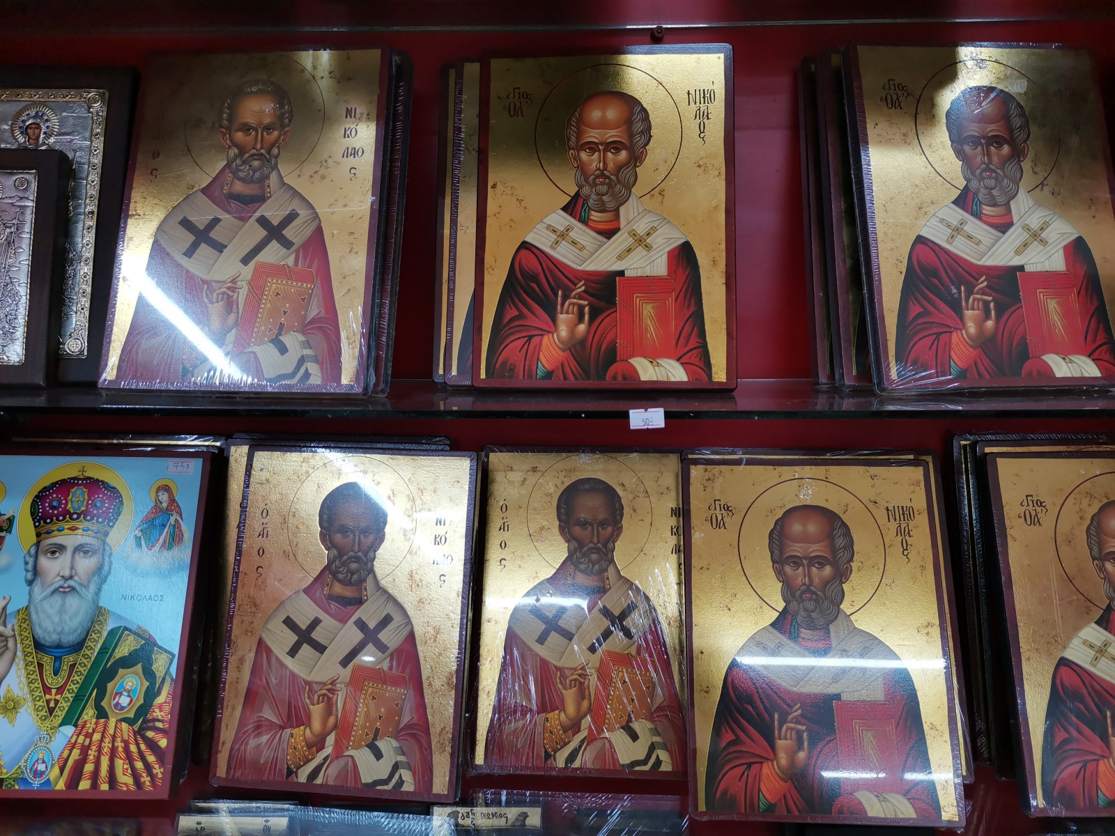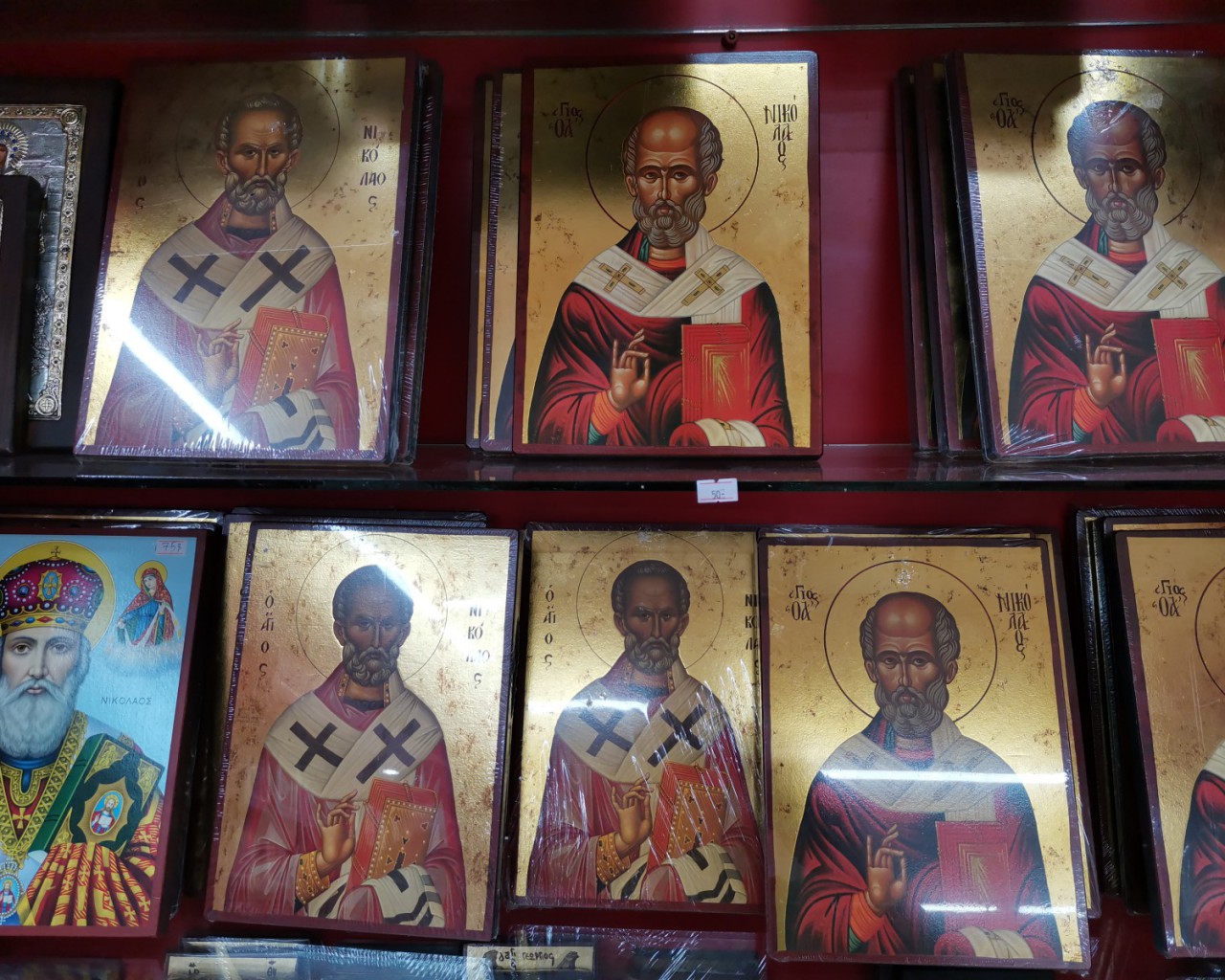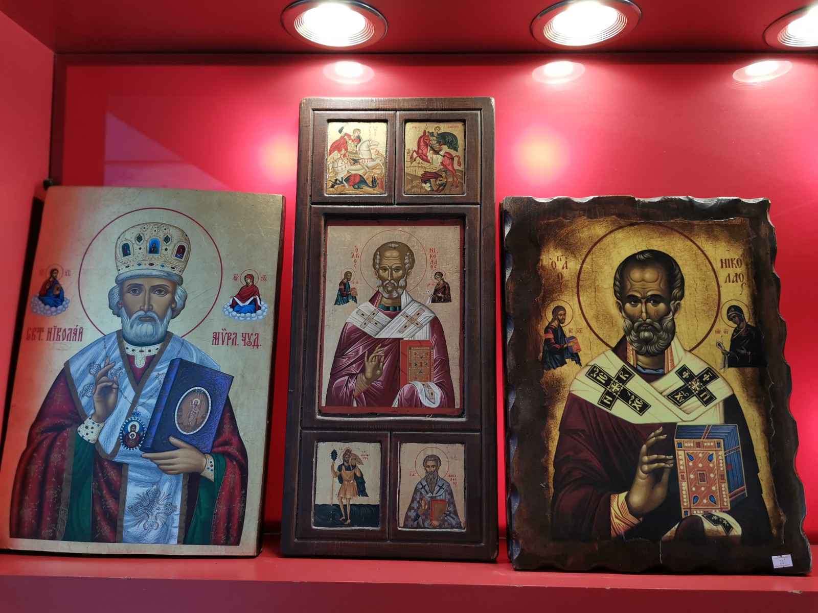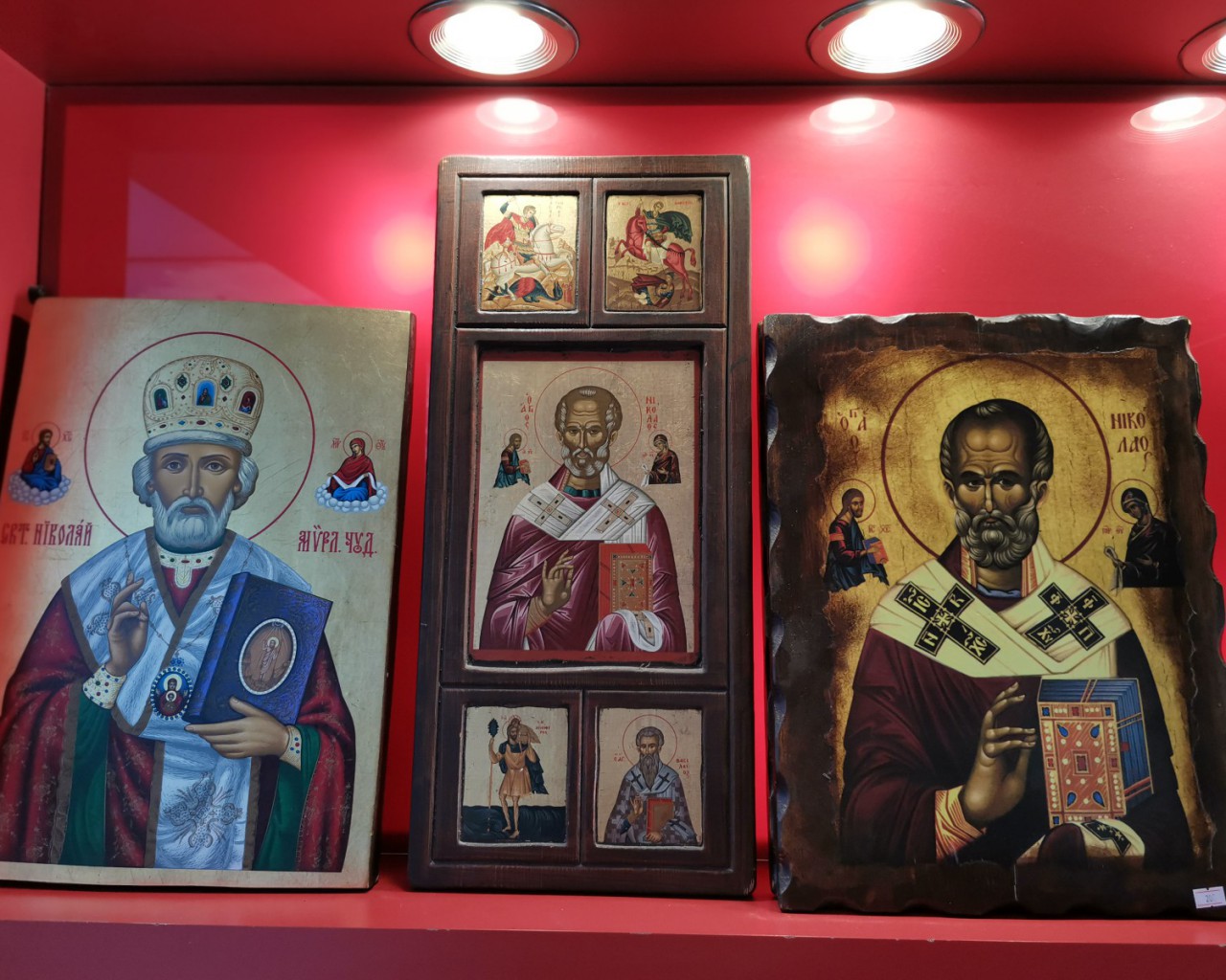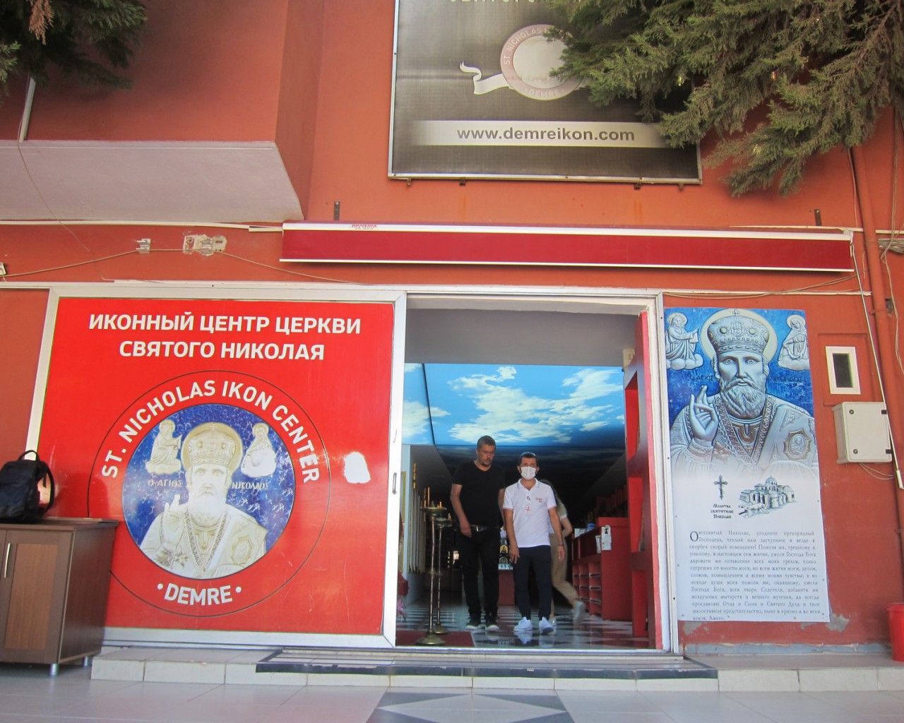 Иконный центр церкви Святого Николая – это церковная лавка, расположенная в здании внушительных размеров в центральной части Демре в непосредственной близости от самого храма. Перед центром обустроена большая автомобильная парковка, на которой останавливаются автобусы с туристами и паломниками, прибывающими в церковь Святого Николая.
