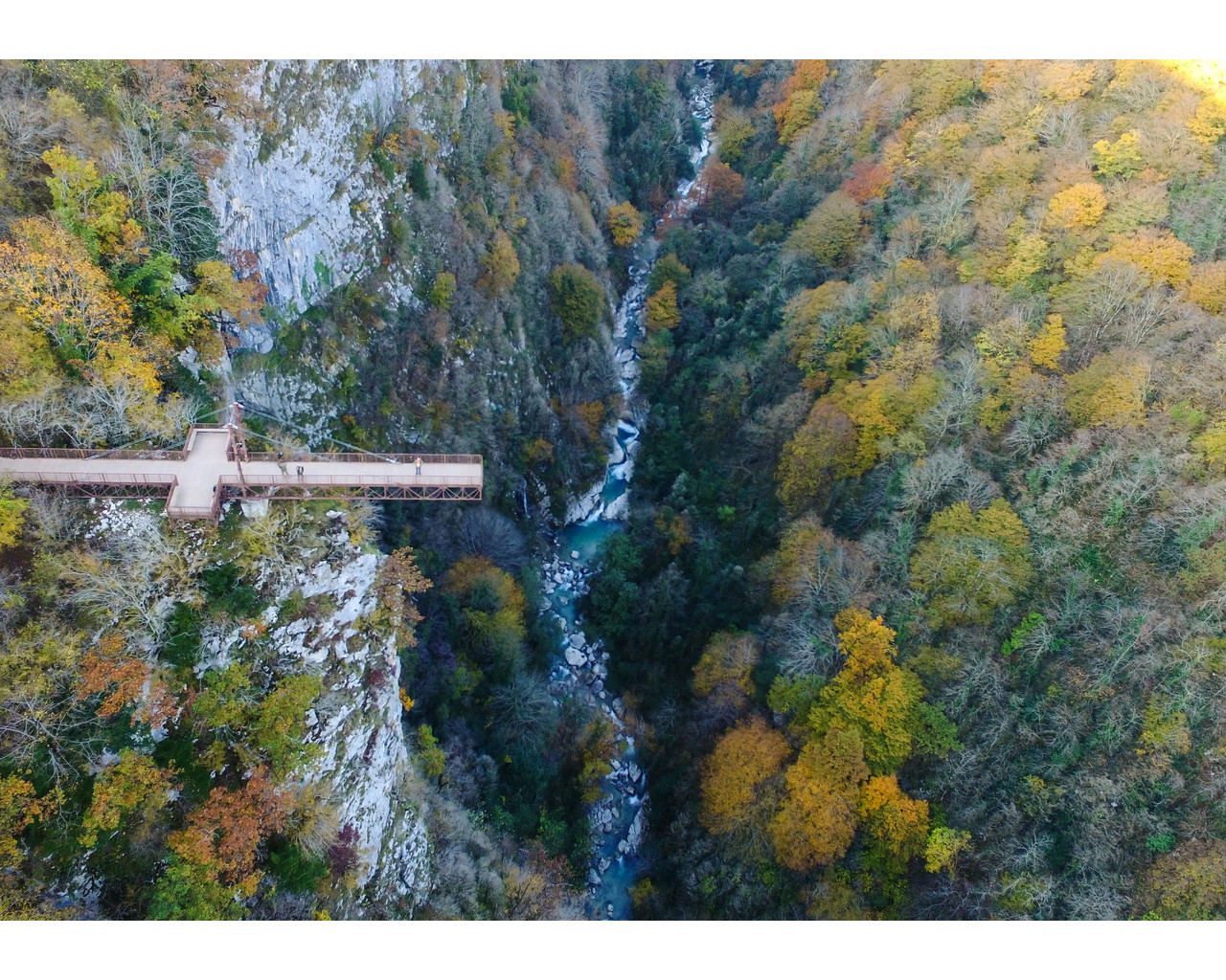 Вдоль скал в ущелье реки Окаце на высоте 140 м над землей сделана подвесная пешеходная тропа (мосты и балконы). Длина тропы – 780 метров.