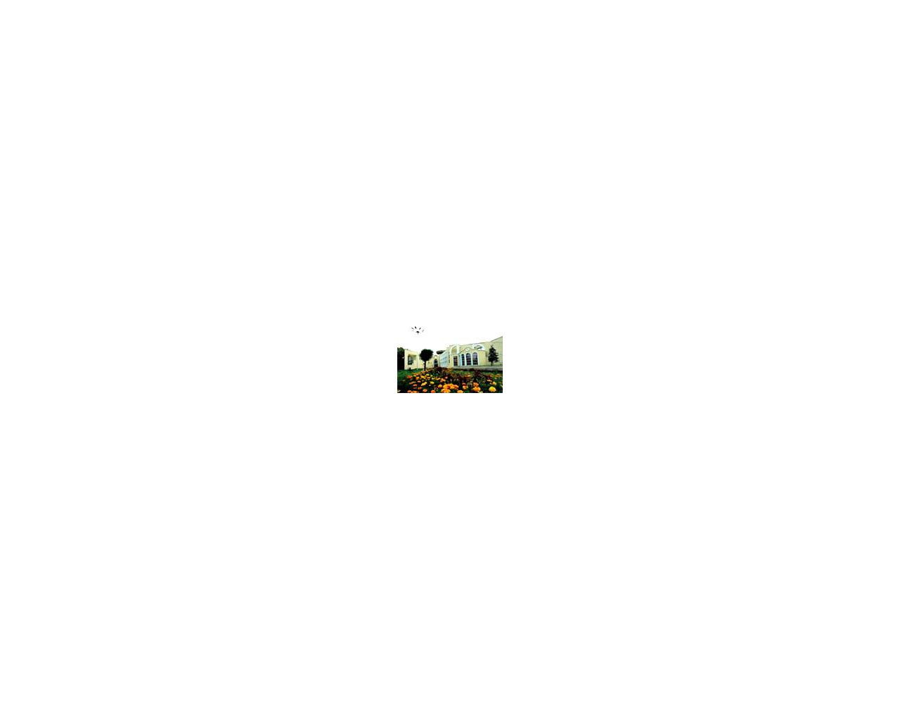 Первый корпус гостиничного комплекса – это небольшое двух этажное здание, окутанное в желтый цвет и находящееся в окружении целого сада цветов.