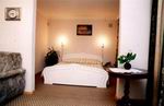 Люксы двухместные двухкомнатные: двуспальная кровать, диван, телевизор, холодильник, телефон, ванна, туалет.