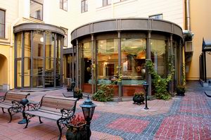- Studio Suite (номер Студио): просторные апартаменты с одной большой или двумя раздельными кроватями, выполненные в классическом стиле с элементами оригинального современного дизайна, выходящие на тихий внутренний дворик. Вместительный гардеробный шкаф и удобный рабочий столик – необходимые элементы прекрасной обстановки. Кухня полностью отделена от спальной комнаты и оснащена современным оборудованием: газовой плитой, электрическим чайником, холодильником. Созданная атмосфера домашнего комфорта располагает к чаепитию с семьей и деловыми партнерами и во время пребывания в нашем отеле позволяет почувствовать себя как дома.