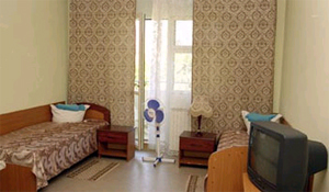 Двухместные номера: площадь 16м кв., телевизор, холодильник, санузел, душ.