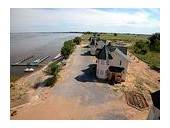 Ранним утром с реки в розовых лучах рассвета коттеджи с башенками выглядят как игрушечные, и этот оазис цивилизации на диких волжских берегах кажется настоящим чудом. Только подойдя на лодке вплотную к причалу начинаешь верить в реальность происходящего.