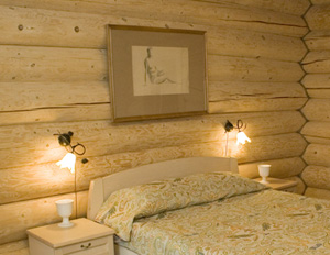 Стены - шлифованные вручную неокрашенные хвойные бревна, лиственничные полы. Все