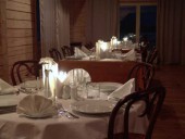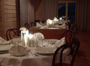 - В погожие дни наши официанты накрывают столы на открытой террасе. Наше меню - это преимущественно блюда русской кухни, приготовленные из свежих местных продуктов.