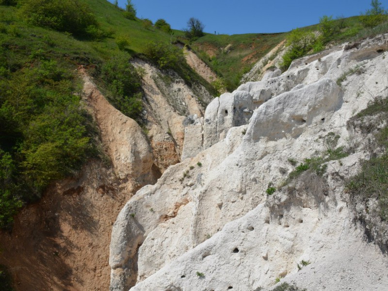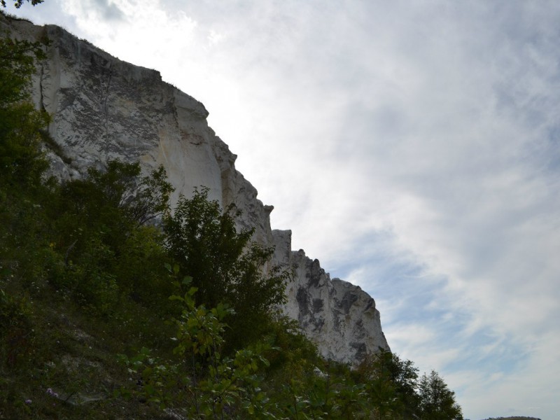 Удивительной красоты меловая скала, место тренировки местных альпинистов