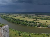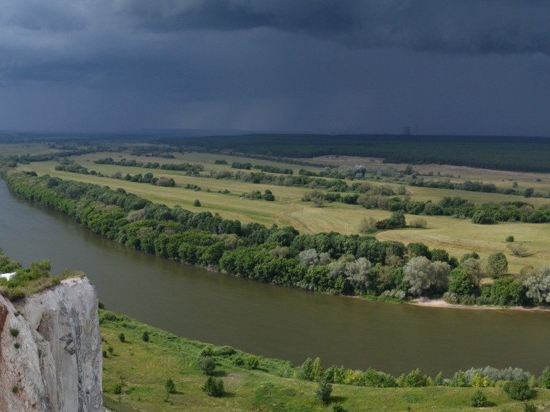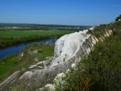 Панорамный вид на Дон и меловые скалы, крупный меловой каньон.