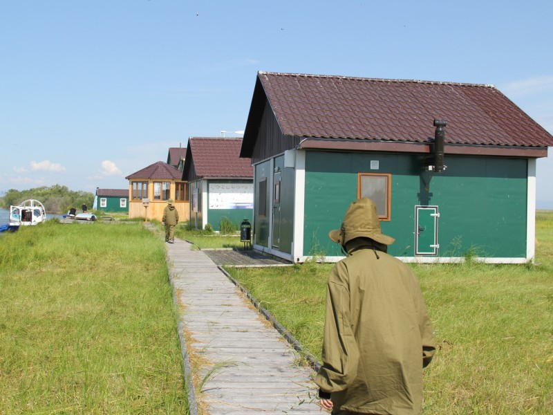 Кордон "Протока Средняя". На кордоне расположен эколого-туристский комплекс "Птичье царство", включающий 3 домика с общим количеством мест - 14. Есть отдельное помещение для кухни и столовой. В ЭТК находятся три смотровых площадки для наблюдения за птицами.