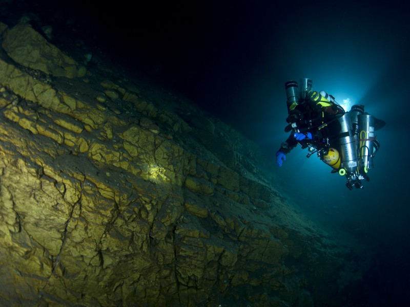 Нижнее голубое озеро - излюбленное место любителей дайвинга: температура здесь круглый год одинаковая, +9 градусов.