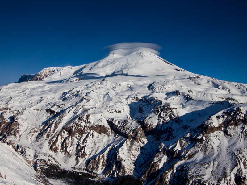 Двухвершинный конус потухшего вулкана. Высота Западной вершины — самой высокой точки Европы и России — 5642 м. Увидеть Эльбрус едут люди со всего света. Любители зимних видов спорта открывают сезон уже в ноябре, и длится он до апреля месяца. Летом же смельчаки пытаются покорить эту высочайшую точку Европы.