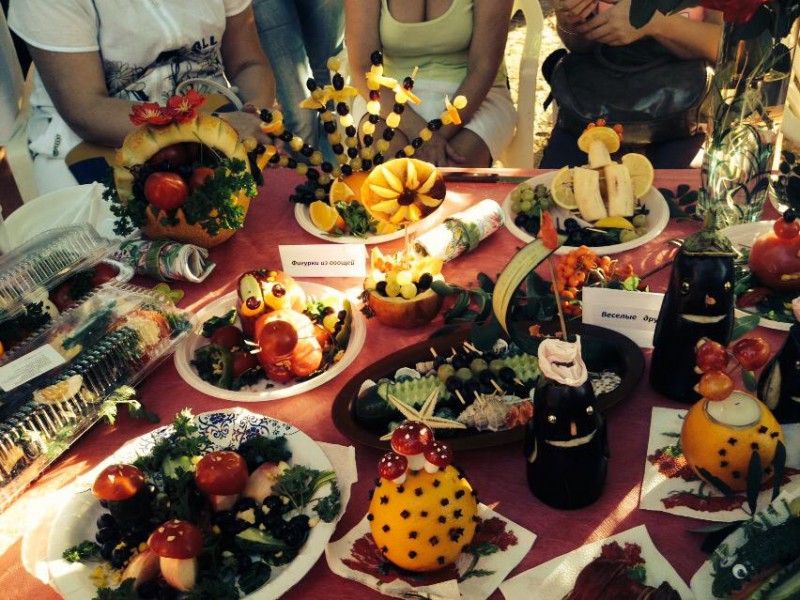 17:00 - На площадке детского парка "Гномик": выставка-ярмарка "Город мастеров", "Карнавальная винегреция" (конкурс костюмов), "Чудище в огородище" (конкурс огородных чучел), "Спортивно-томатные состязания".