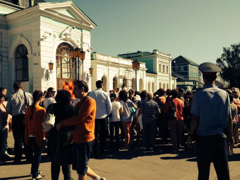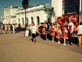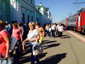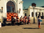 Праздничная тематическая встреча туристов поезда в г. Сызрани.