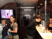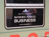 "бизнес" (в вагоне TV, бар-буфет, кондиционер, комфортабельные мягкие кресла, столики)