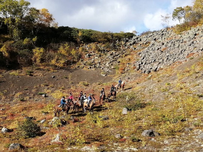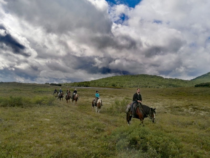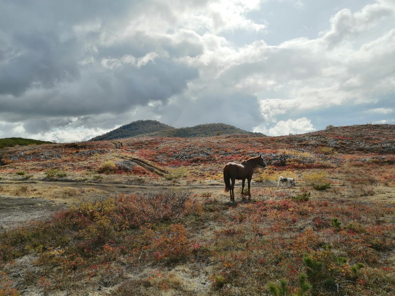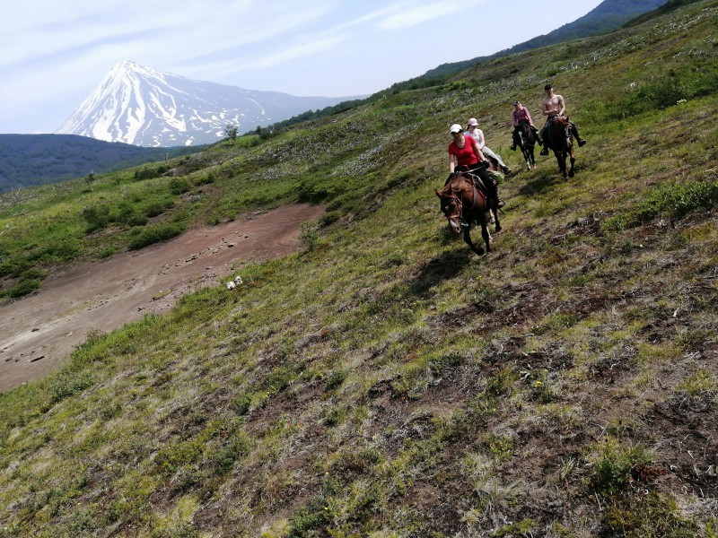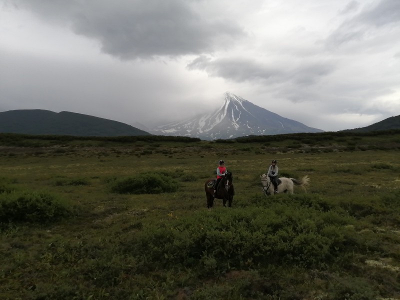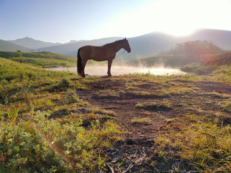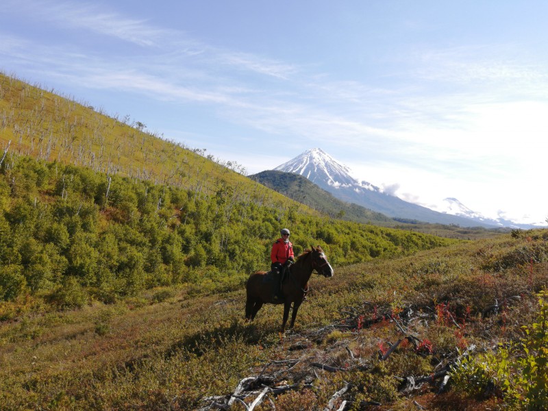 - 9-00 седловка лошадей, выход в радиальный маршрут до перевала Корякский (12 км) 3 часа – в одну сторону, подъем на высоту 935 м вместе с лошадьми (ближе к вершине в поводу).