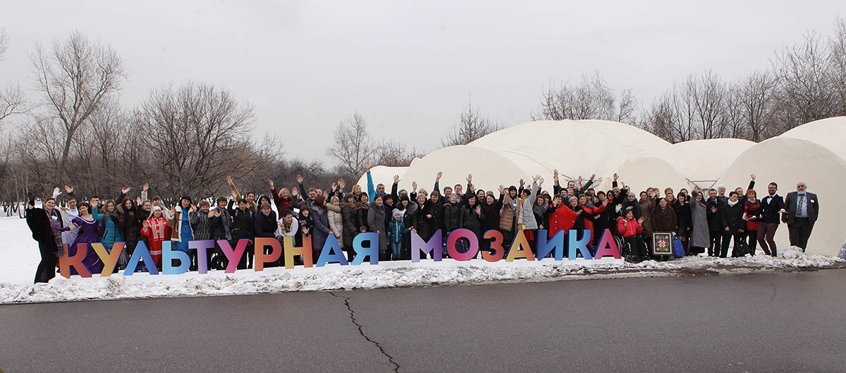 Выставка проектов победителей «Культурной мозаики» - 2014 отразила все многообразие национальных традиций народов России и культурные особенности регионов. На экспозиции, разделенной на 9 зон, были представлены участники из всех федеральных округов нашей страны. Самой многочисленной была делегация из Приволжского федерального округа. Их представители сумели возродить производство уникальных сувенирных изделий, восстановить древние рецепты местной кухни, увлечь детей и молодежь культурными событиями. Наибольший интерес вызвал стенд «Новинская деревянная игрушка».