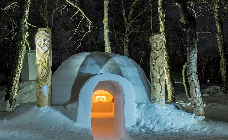 В большом иглу оборудуют холл, бар со стойкой и номера для проживания. Комфортный сон обеспечат специальные спальные системы — утепленные снежные основания, покрытые натуральными шкурами. Даже если снаружи температура опустится до –20 градусов, в иглу будет тепло.