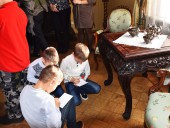 Музейный комплекс дворец В.Т. Асеева: квест кот Блокнот во время экскурсии детям задают вопросы , на которые дети отвечают , разыскивают отгадки и выполняют задания